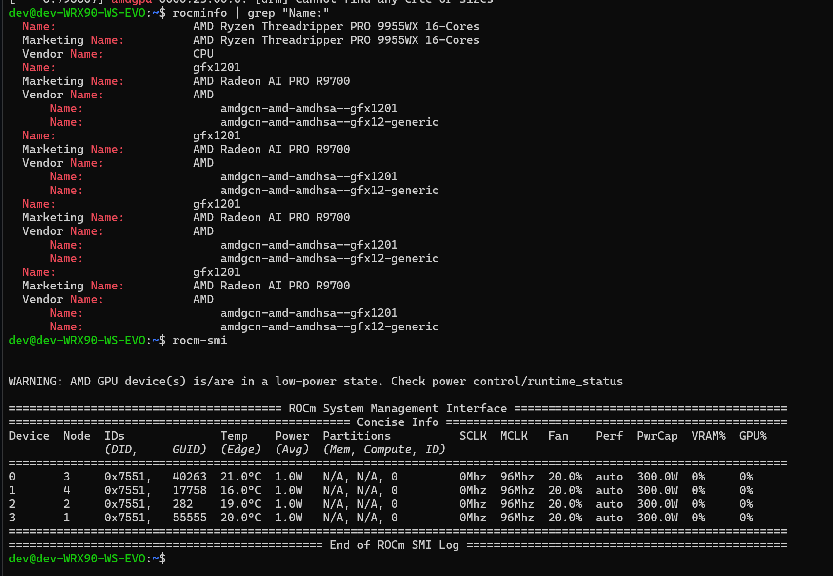 (rocm_env) dev@dev-WRX90-WS-EVO:~$ docker run -it --rm -p 8000:8000 --device=/dev/kfd --device=/dev/dri --group-add video --cap-add=SYS_PTRACE --security-opt seccomp=unconfined --ipc=host -v ~/.cache/huggingface:/root/.cache/huggingface rocm/vllm-dev:rocm7.1.1_navi_ubuntu24.04_py3.12_pytorch_2.8_vllm_0.10.2rc1