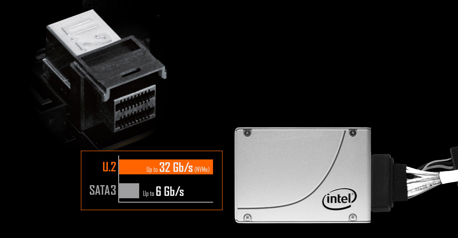 From a gigabyte x399 designare, I have an m.2 to U2 adapter (same U.2 connector as in the previous picture), x399 was PCIE 3.