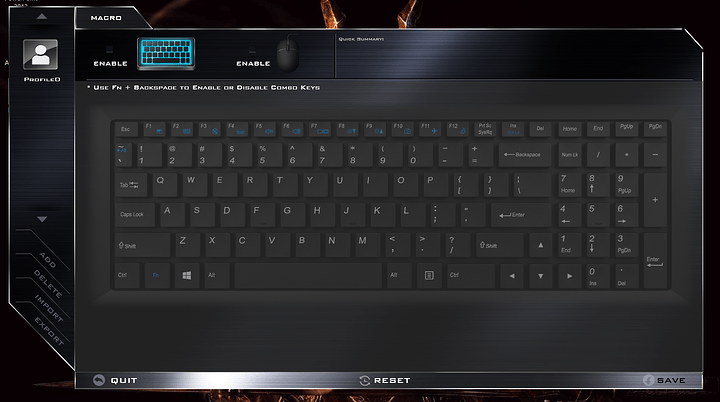 Software wise, it is identical to Venom Blackbook that Linus had reviewed. Though there are modes like Gaming which allows you to tweak some setting under that mode. Do take note that by turning on Power saving mode from the command center (FN+Esc), it turns off the wireless by default. It also has built in macros which you should not be using if you want to be good in games. It is an insult to one’s skills IMO.