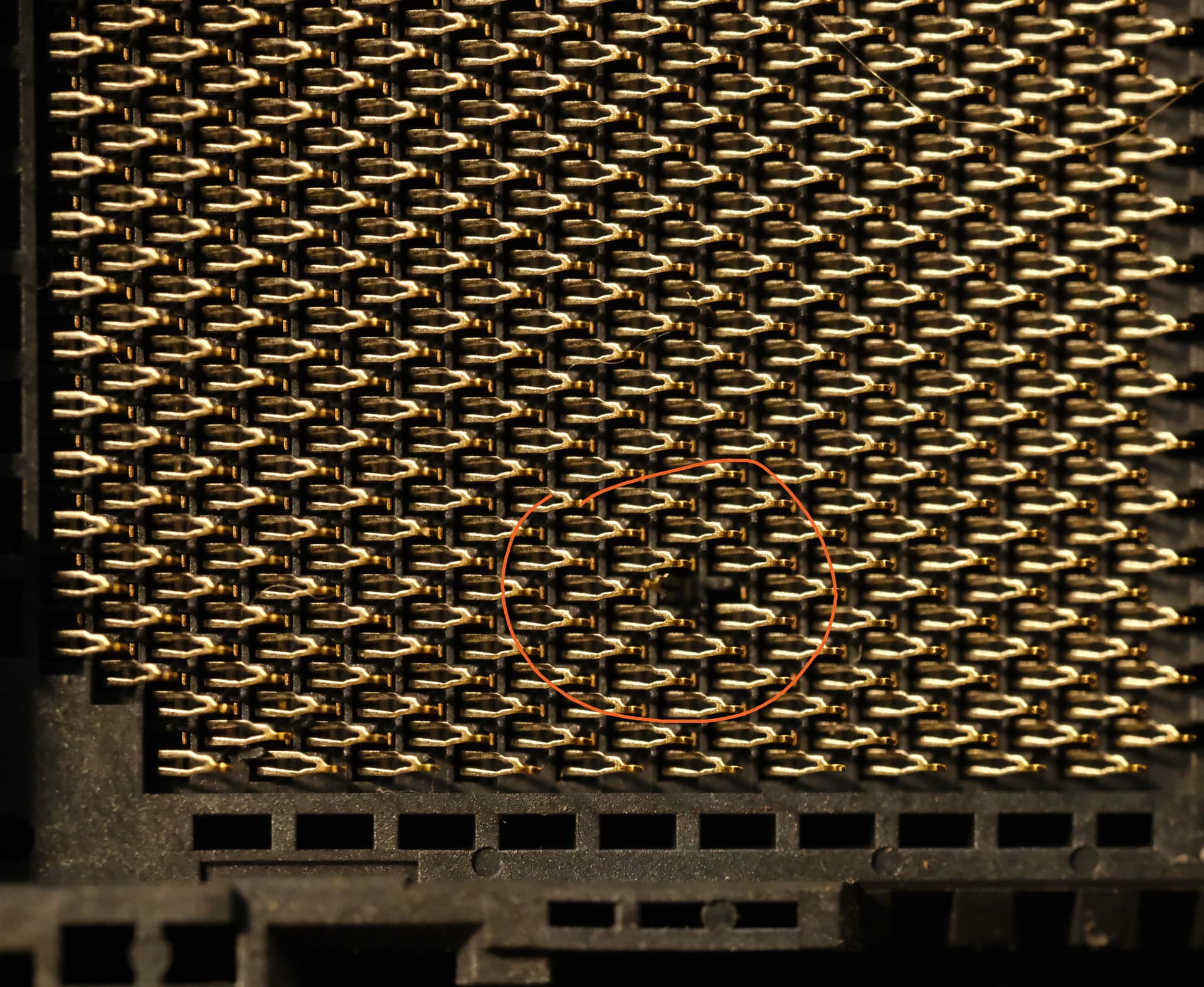 Lo and behold, that dust ended up now being dust at all but a bent pin! Three of them in fact. I’m not sure how I missed it, but it’s probably due to the different lighting.