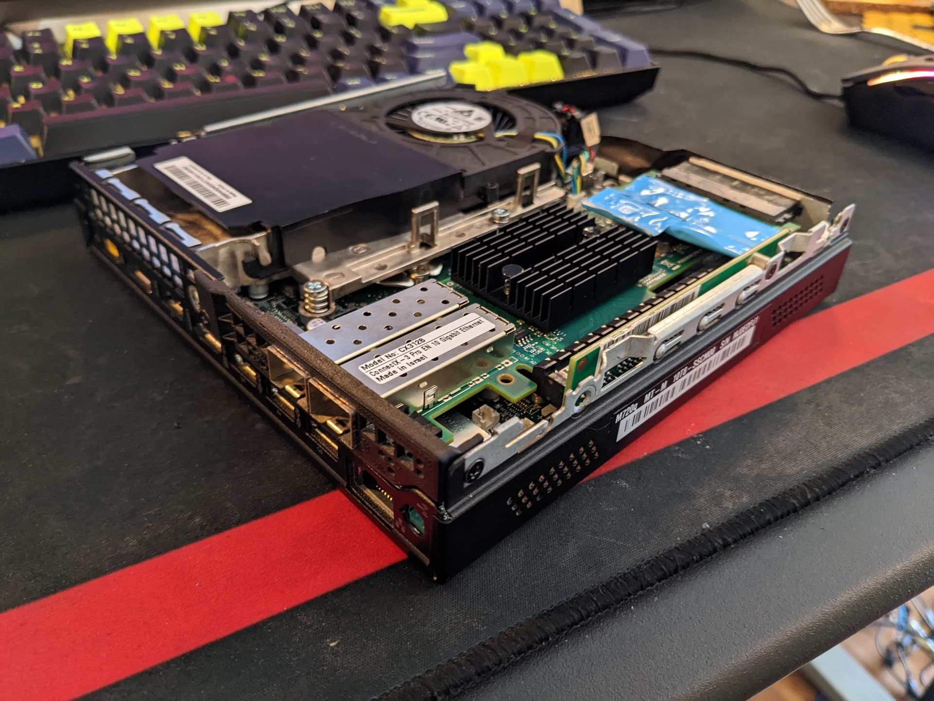 Dual 10gb SFP w/ 8x PCIe 3.0 on a 16x slot in a M720Q, I expect this will be more than enough bandwidth for such a little PC.