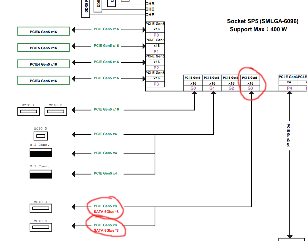 On the ASRock board, the two MCIO ports can connect to 8 SATA each. Are these SATA connections sharing the 6 GbE bandwidth, or does each SATA connection have a full 6 GbE bandwidth?
