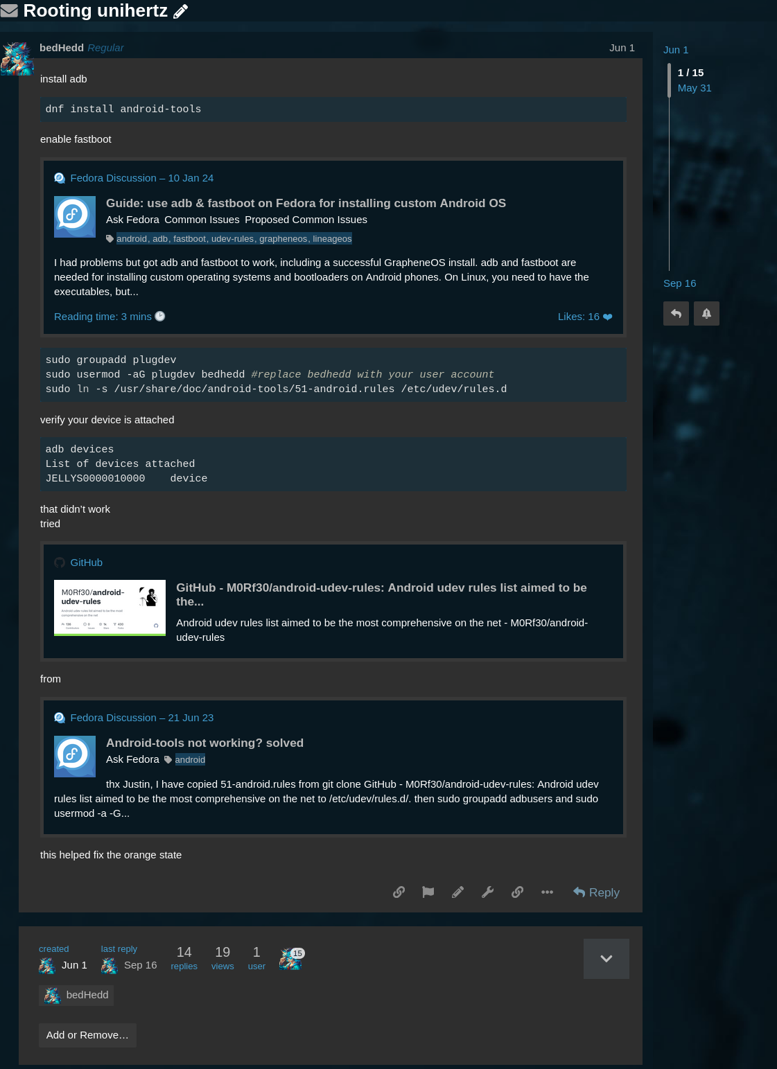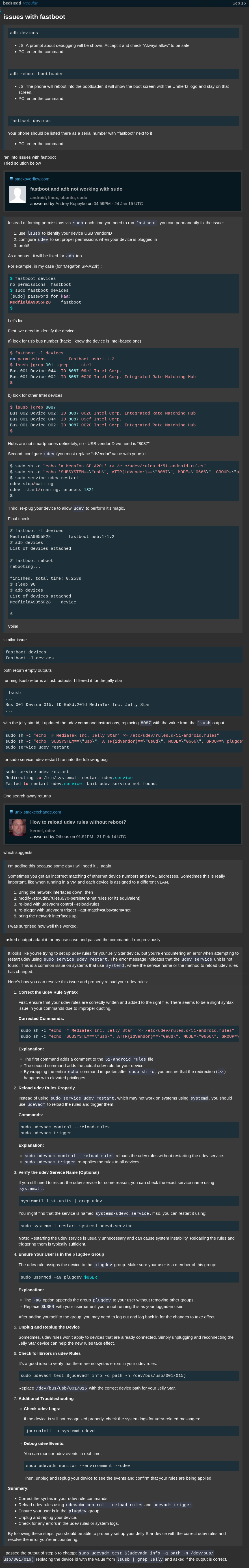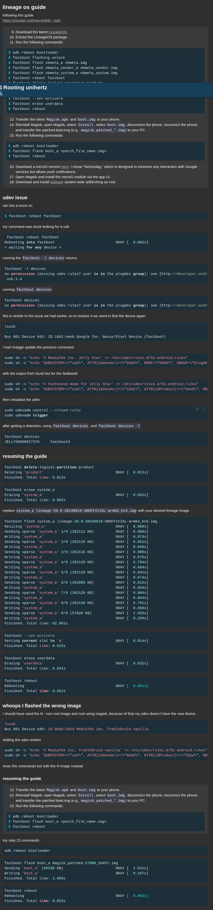 The first documentation was for how to get my fedora desktop to talk with adb. Previously I had been calling a adb folder. The guide gave me a package I can install so that I wouldn’t have to call a script for adb