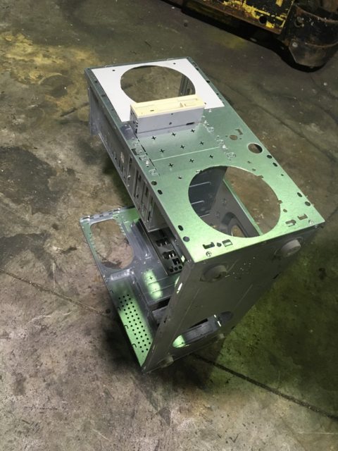Finished drilling and cutting, cleaned down the case and threw everything inside.