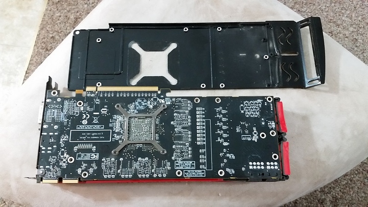 The test fit of this card was very tight to say the least, akward twisting would be required. My issue became justify spending more money on another card or mod the backplate. Since I just blew some cash on a Sapphire R9 290, mod was the answer.