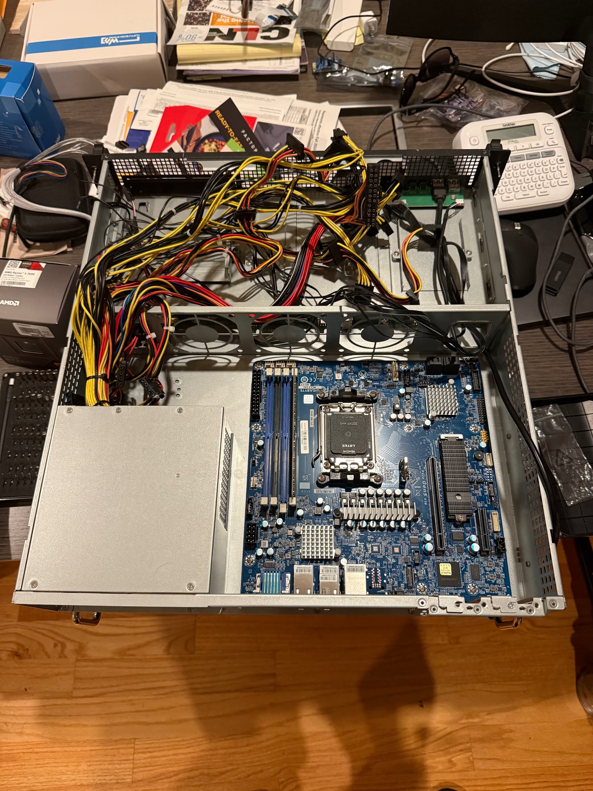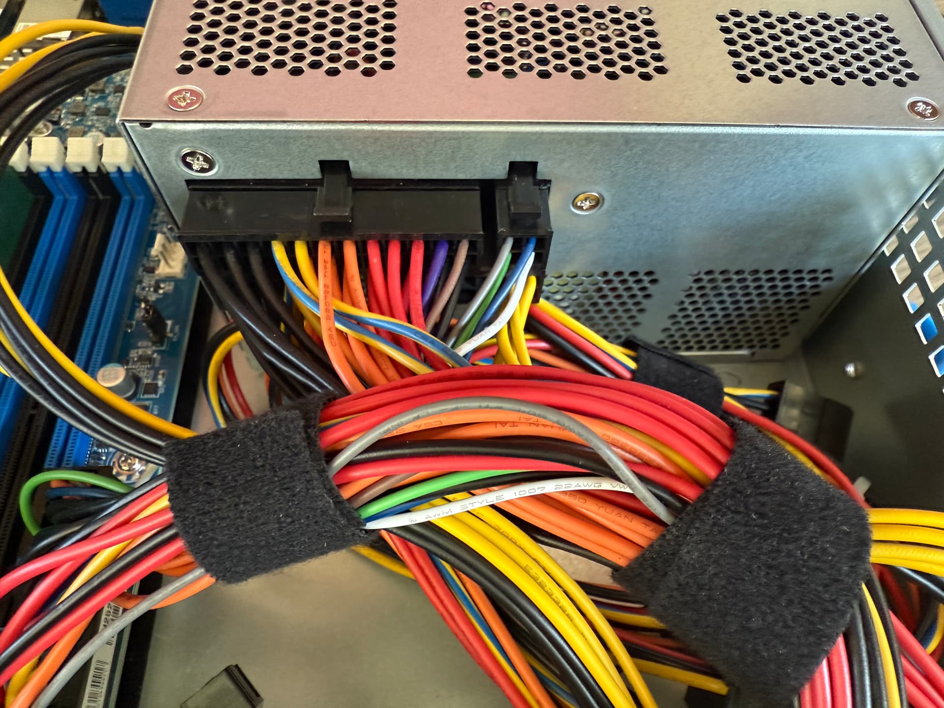 The other change I made mid build was the PSU. Pictured in the image above is a Seasonic SSP-650RS, which while has plenty of power for a front to back ATX PSU, has way too many cables I don’t need and is 20mm longer. This combined with the extra cables made management a huge pain, and I decided to grab a shorter FSP unit from Digikey that matched my use case better.