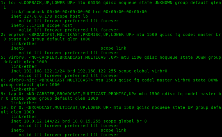 Note: My terminal fonts are currently such that _ are not visible. I will fix that later. Any instance of tap 0 and br 0 are really tap_0 and br_0.