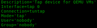 I feel like I should be listing tap_0 as the device for my VM to use, but virt-manager wants a bridge. I don't know why. Why it would create virtbr0-nic then ask for a bridge? No clue.