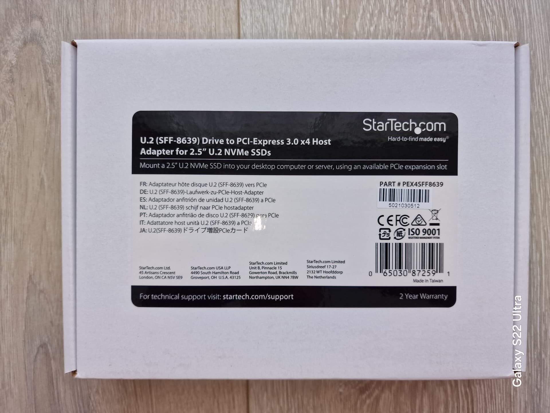 I am using the StarTech PEX4SFF8639 U.2 To PCIe Adapter Card with it, and I’ve put it in the PCIe x8 slot.