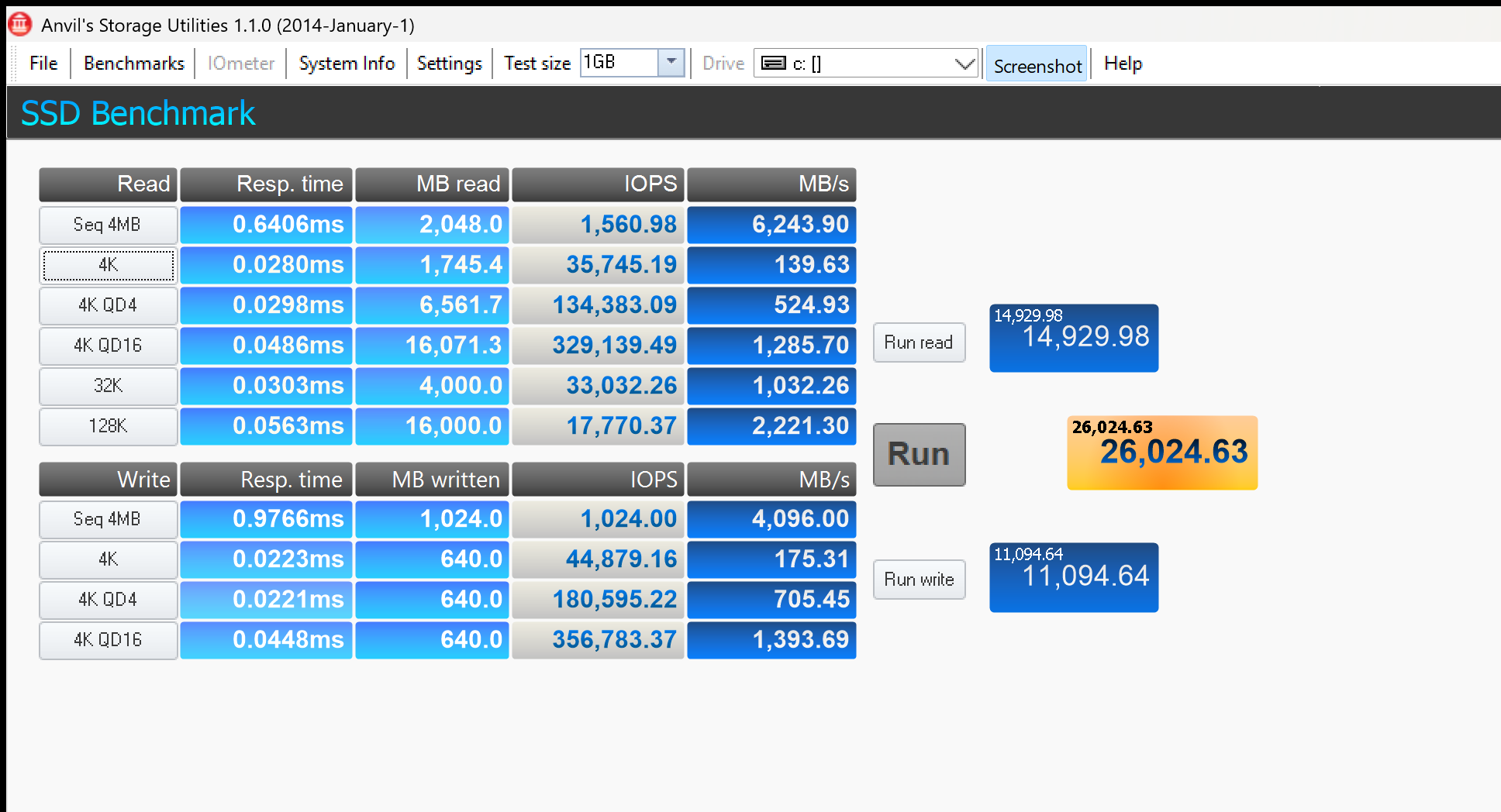 RND4K Q32T1: 4000+ read & write / RND4K Q1T1: 400+ read, 380+ write.