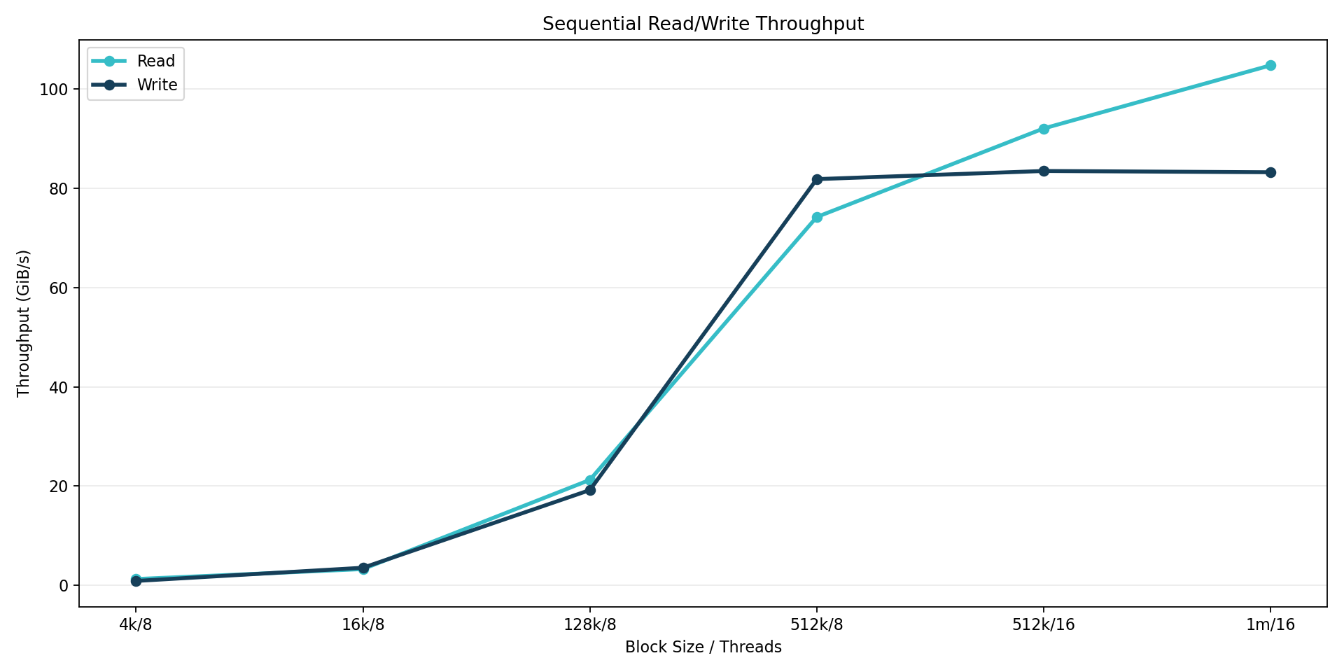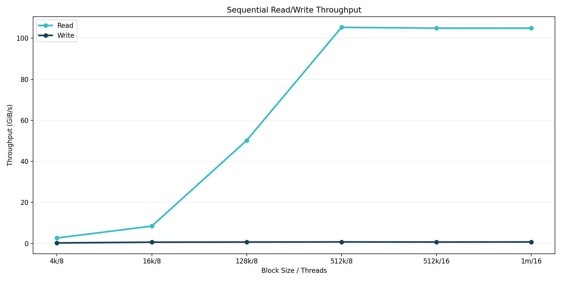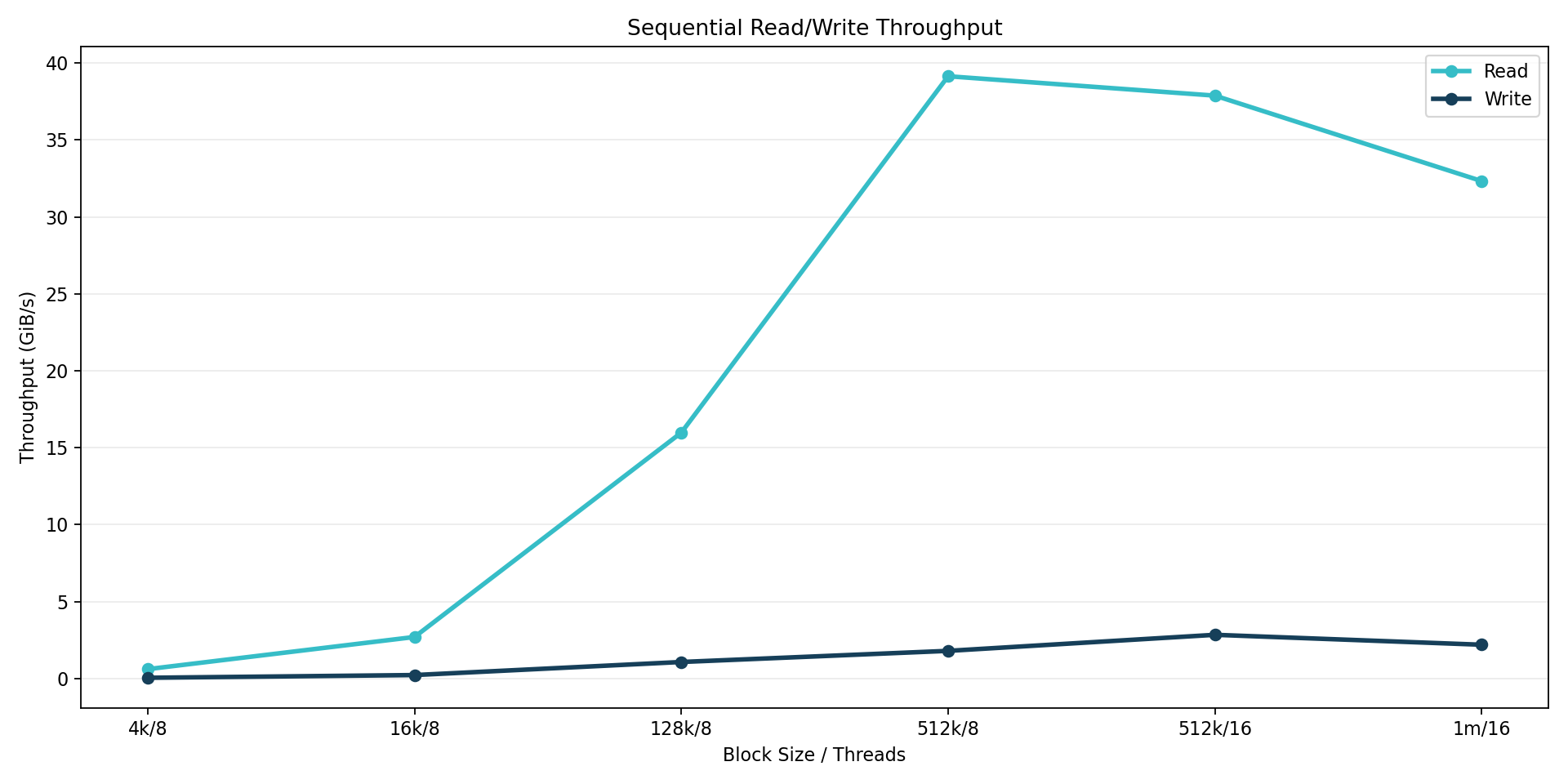 Note: This one is a bit misleading because it was really hard to eliminate the OS cache at smaller block sizes and thread counts because of the amount of ram in the system.