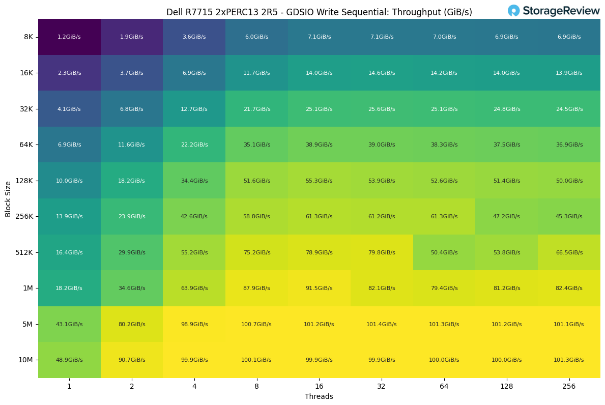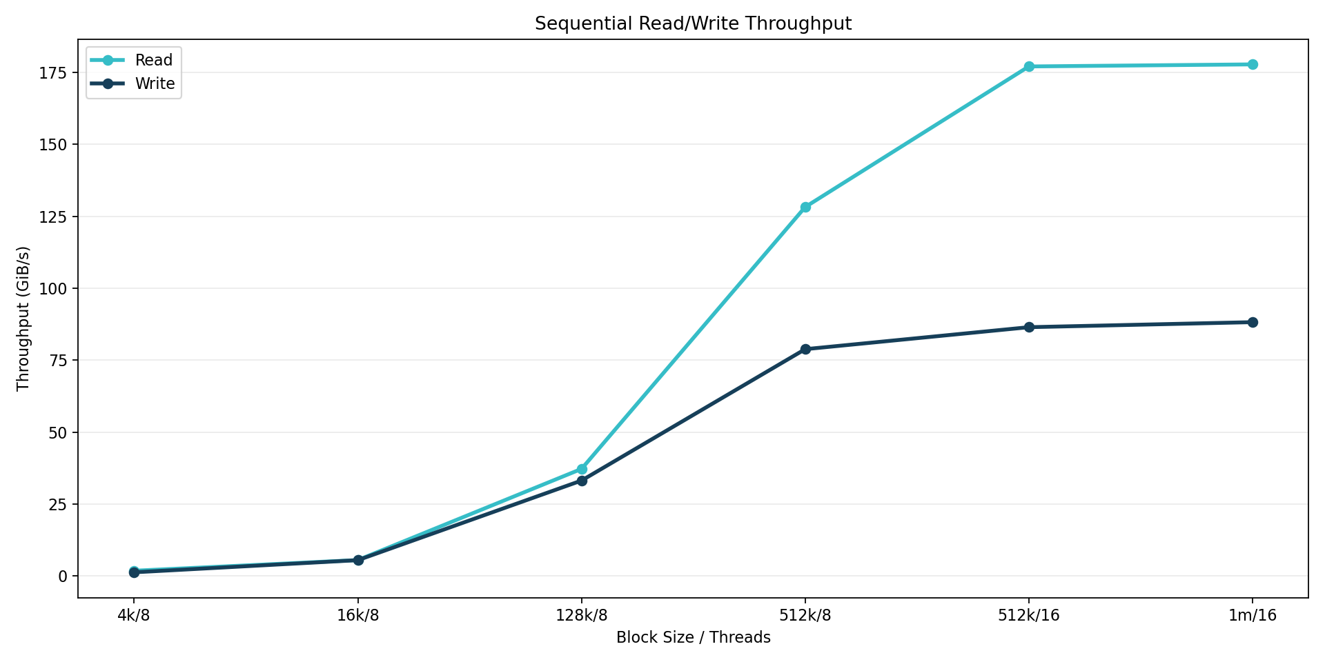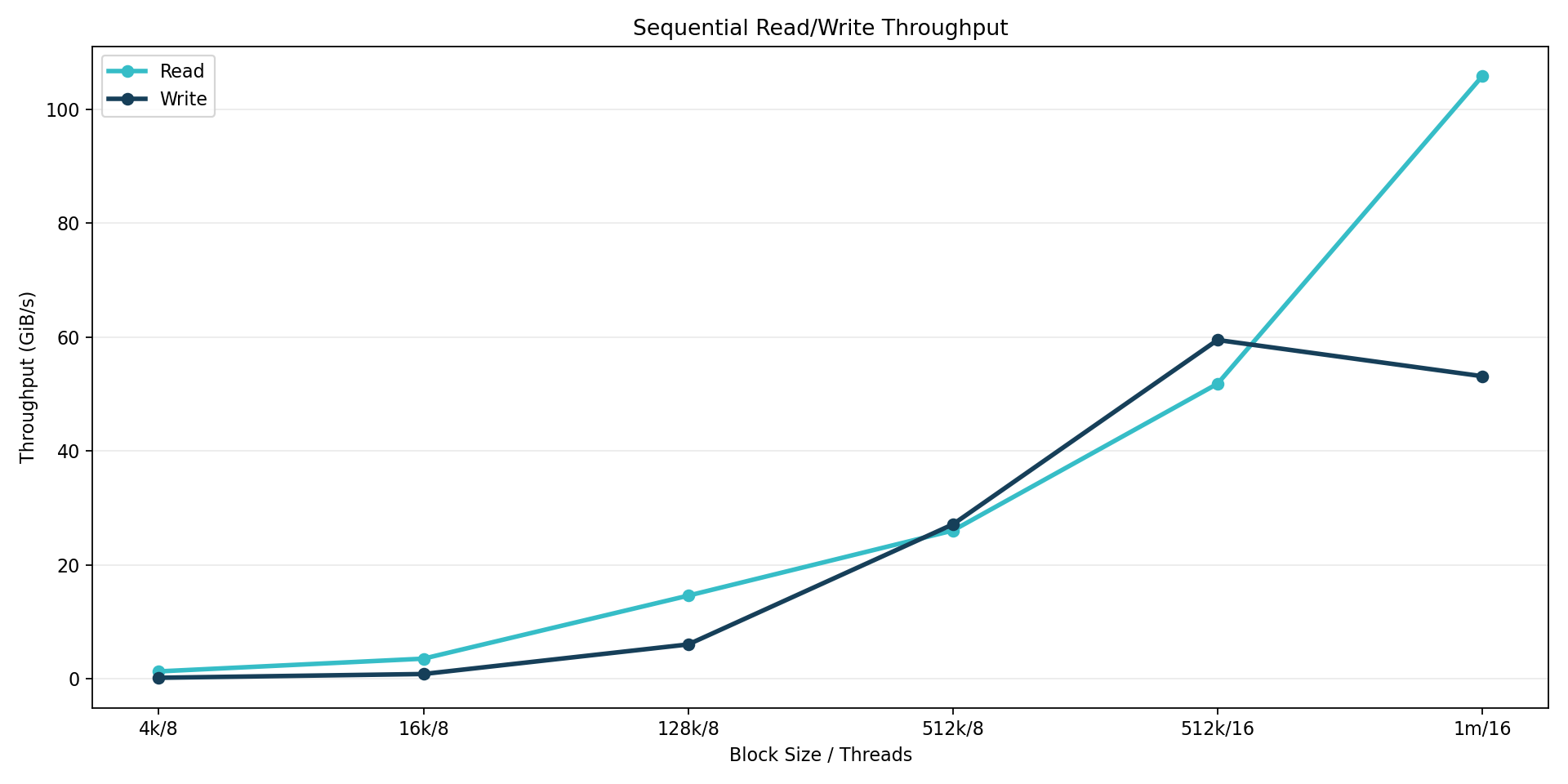 Note: This one is a bit misleading because it was really hard to eliminate the OS cache at smaller block sizes and thread counts because of the amount of ram in the system.