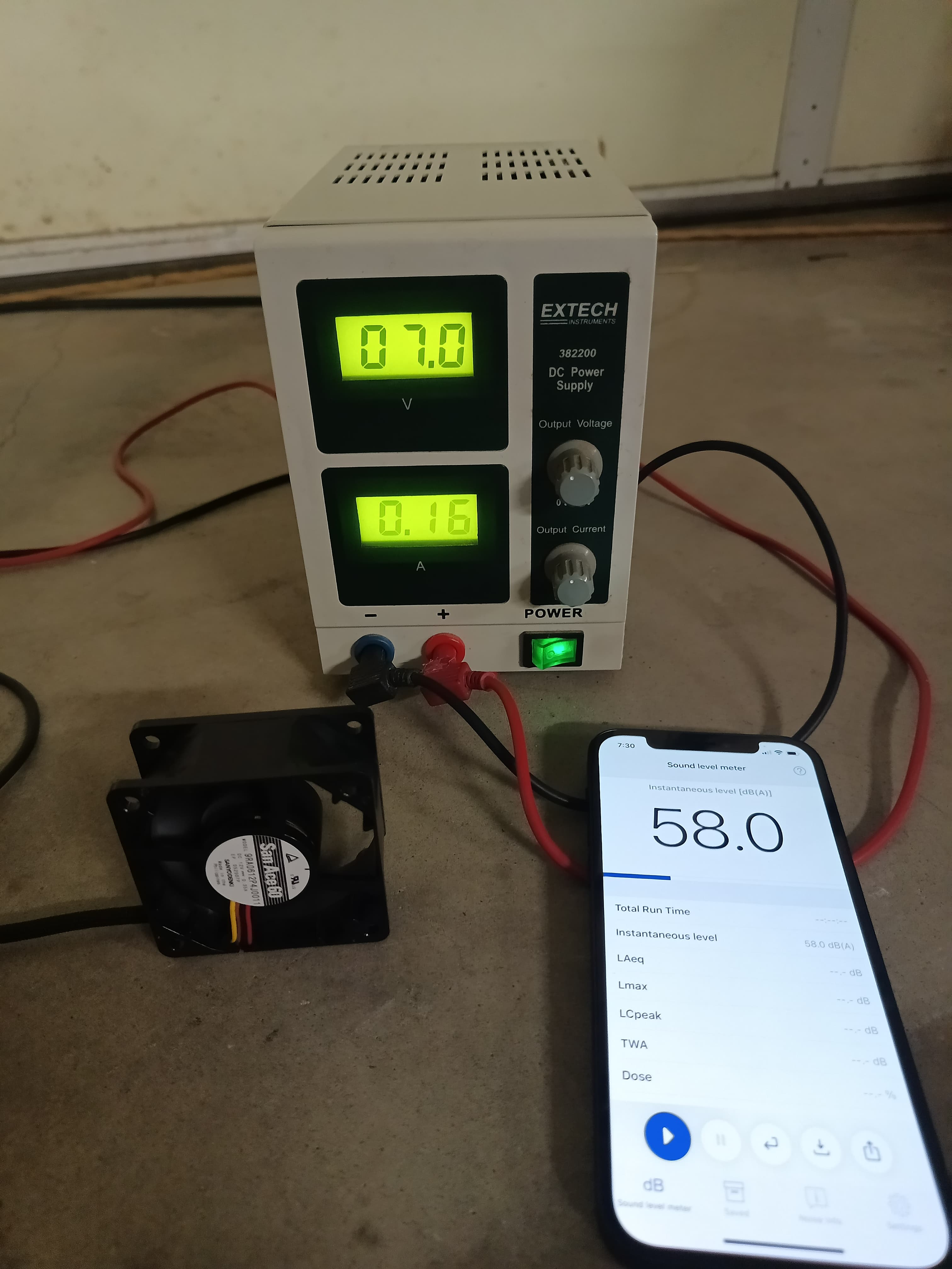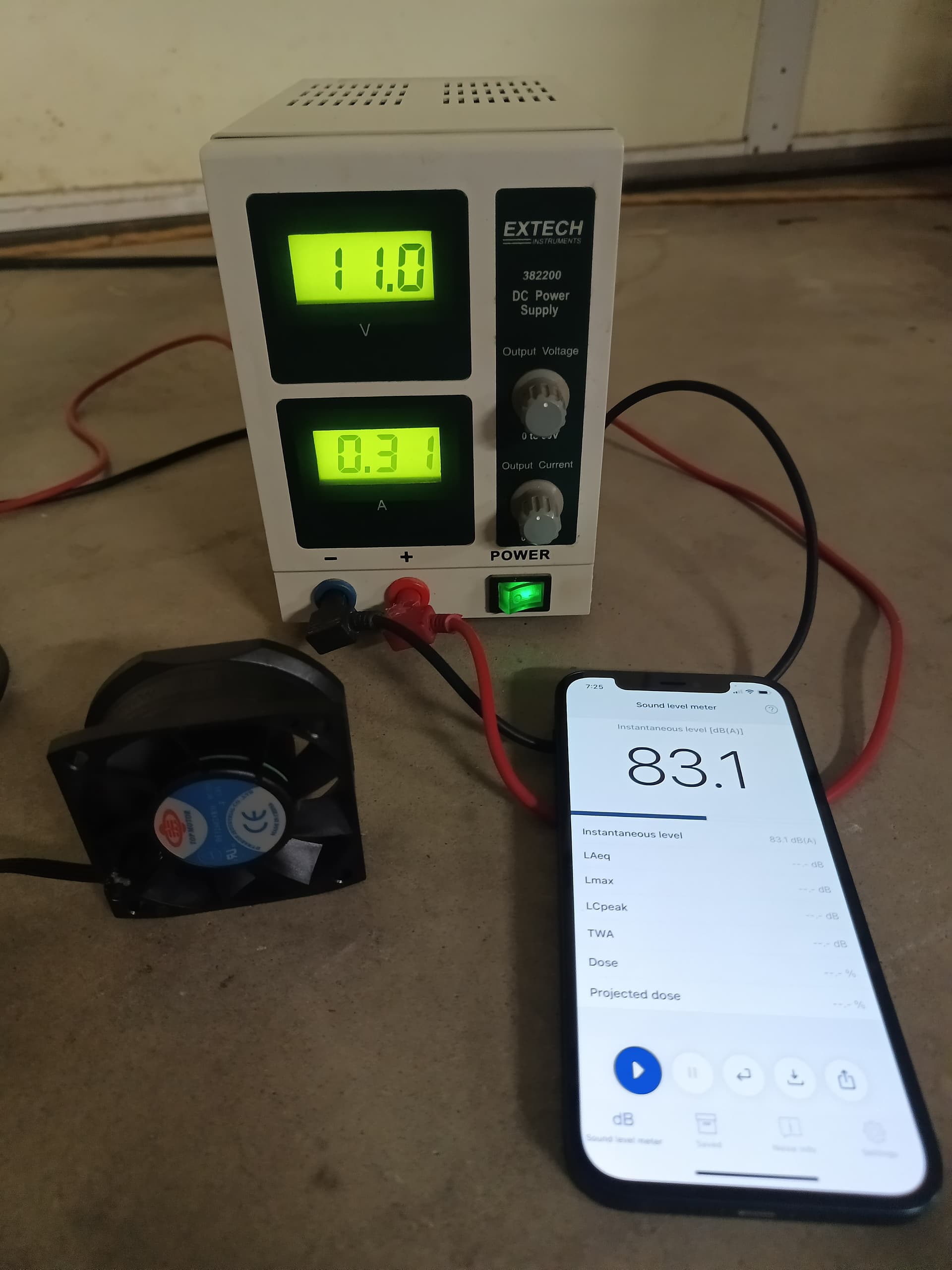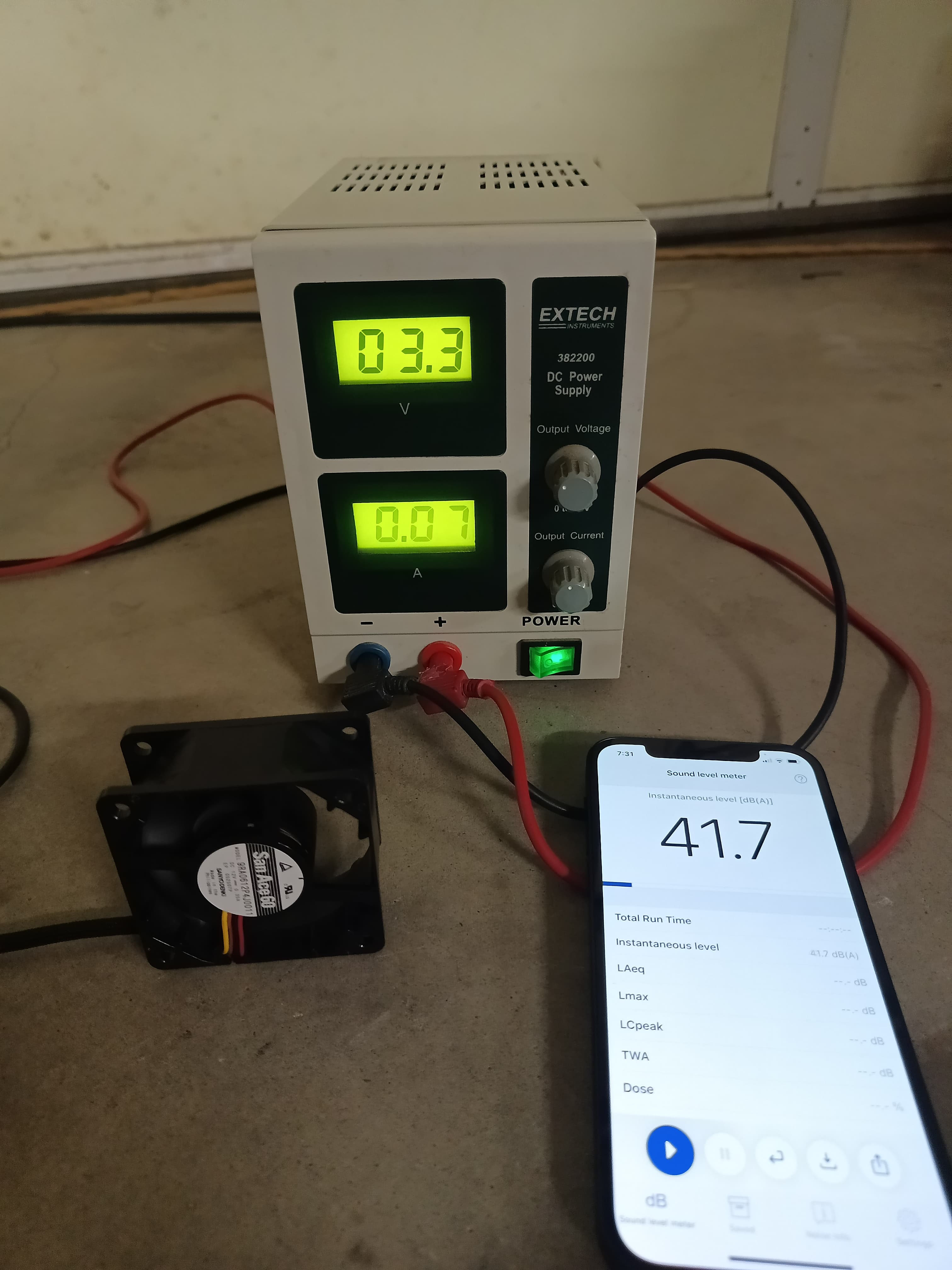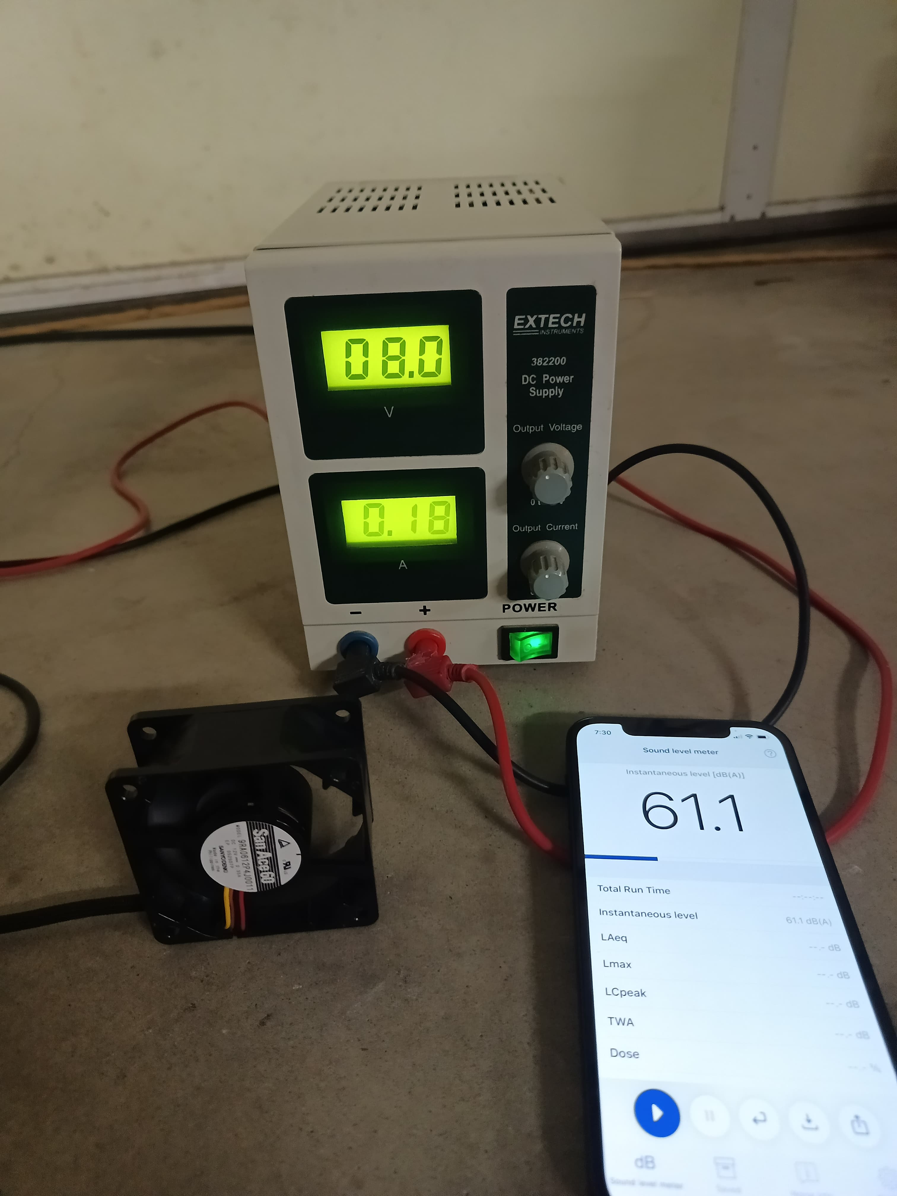 I don’t have a way to measure static pressure or flow, although my hand tells me that the 9RA might have a slight edge in flow volume, but I can measure the sound level and electrical load of the fans in the same position and orientation.