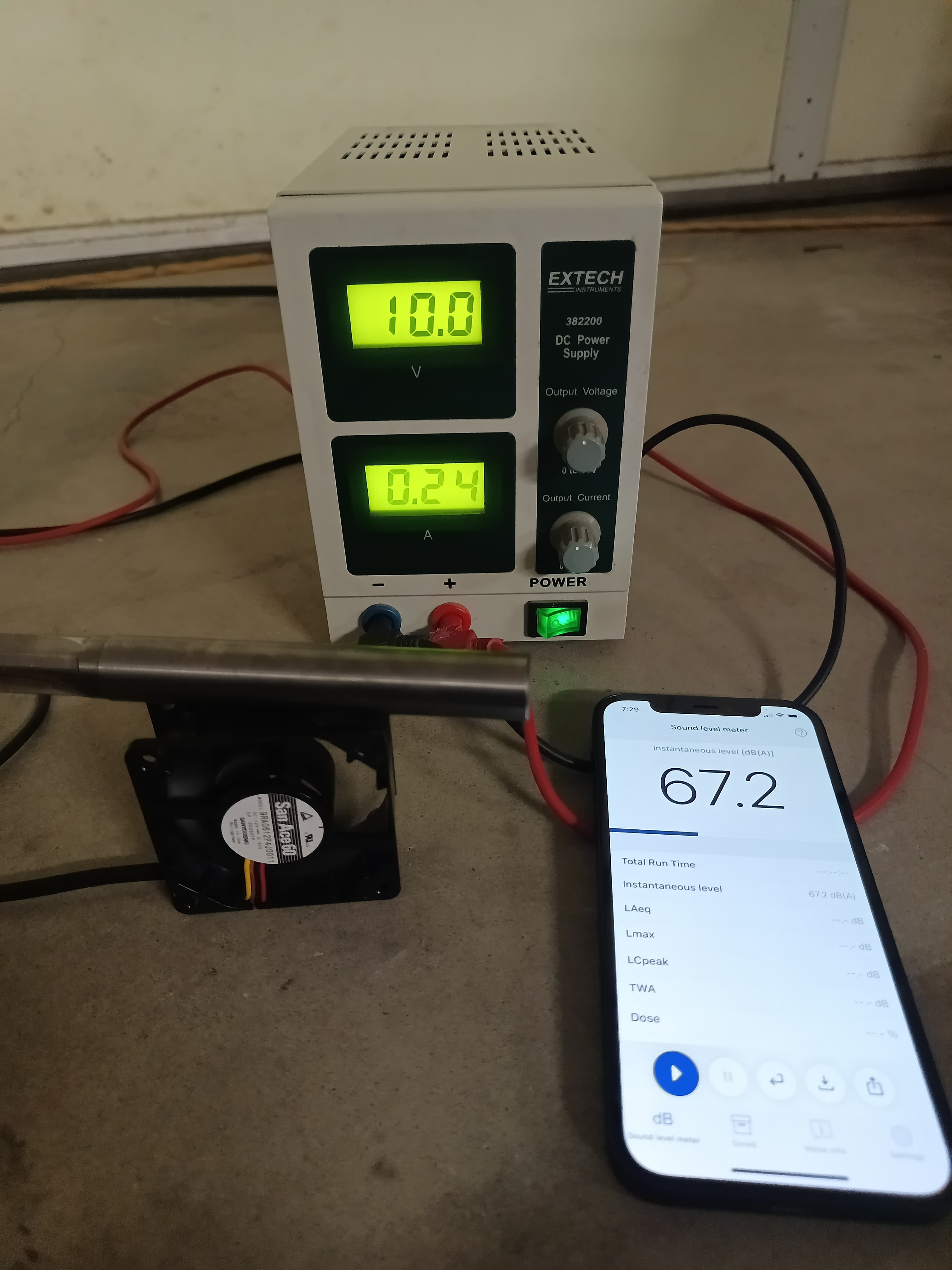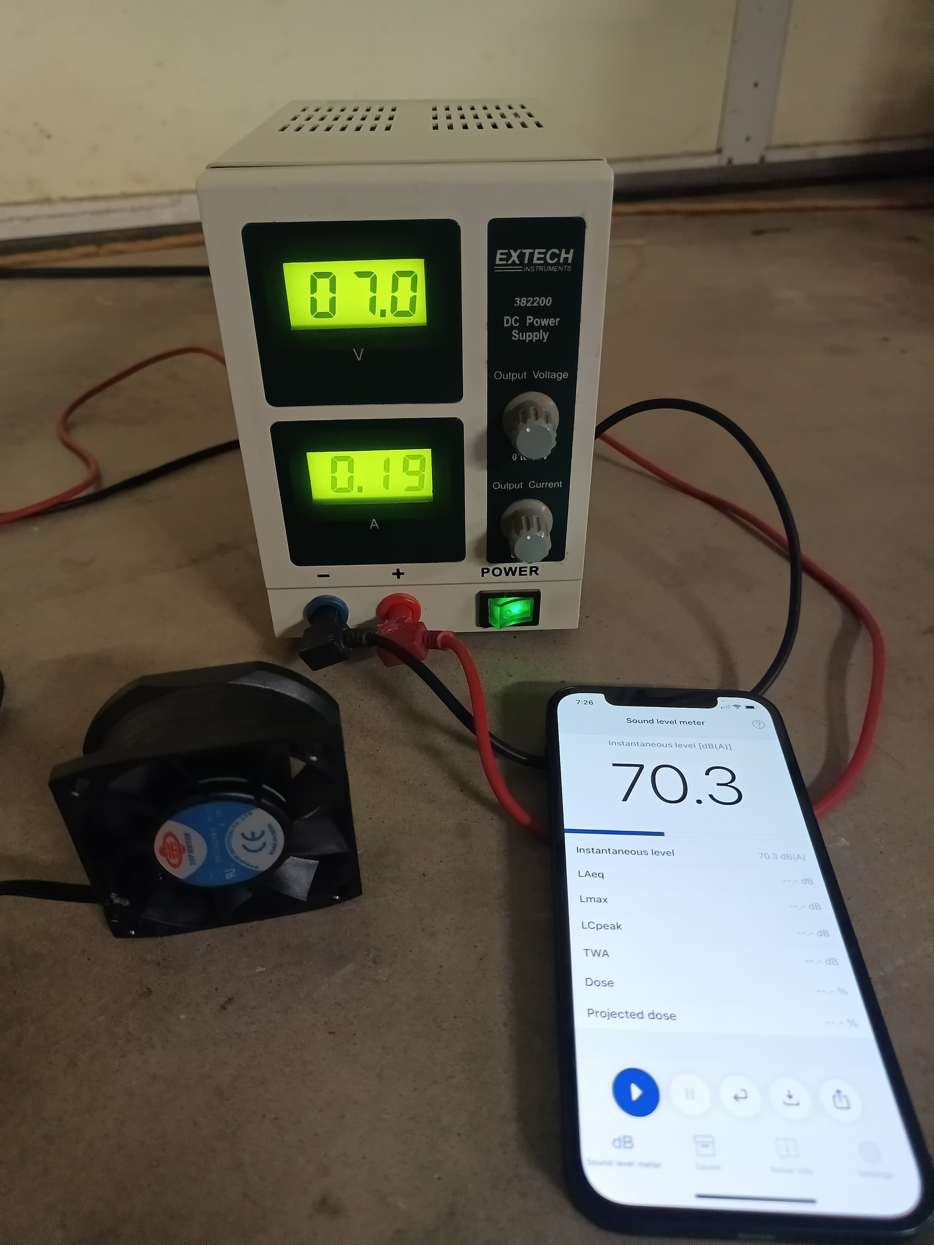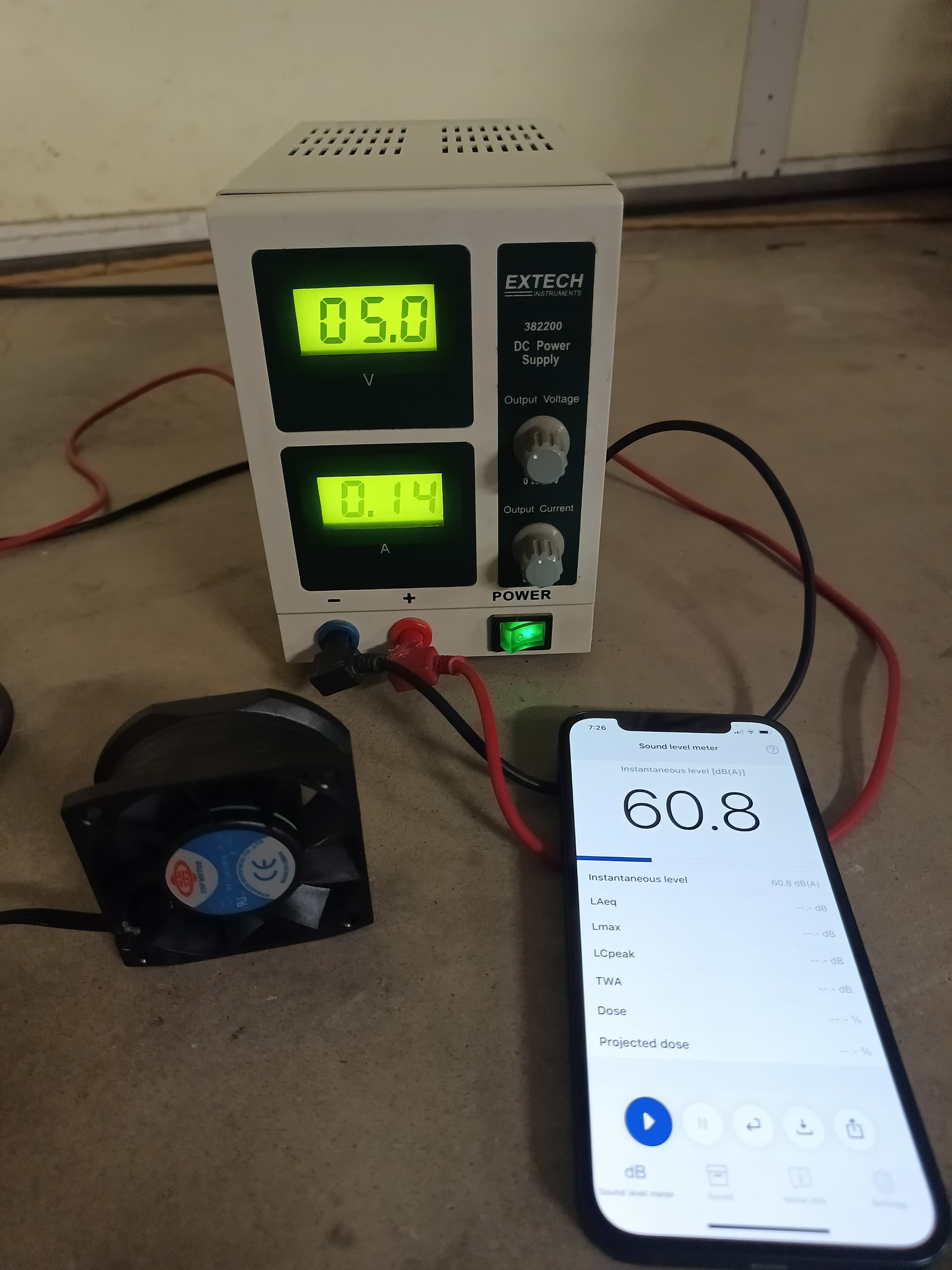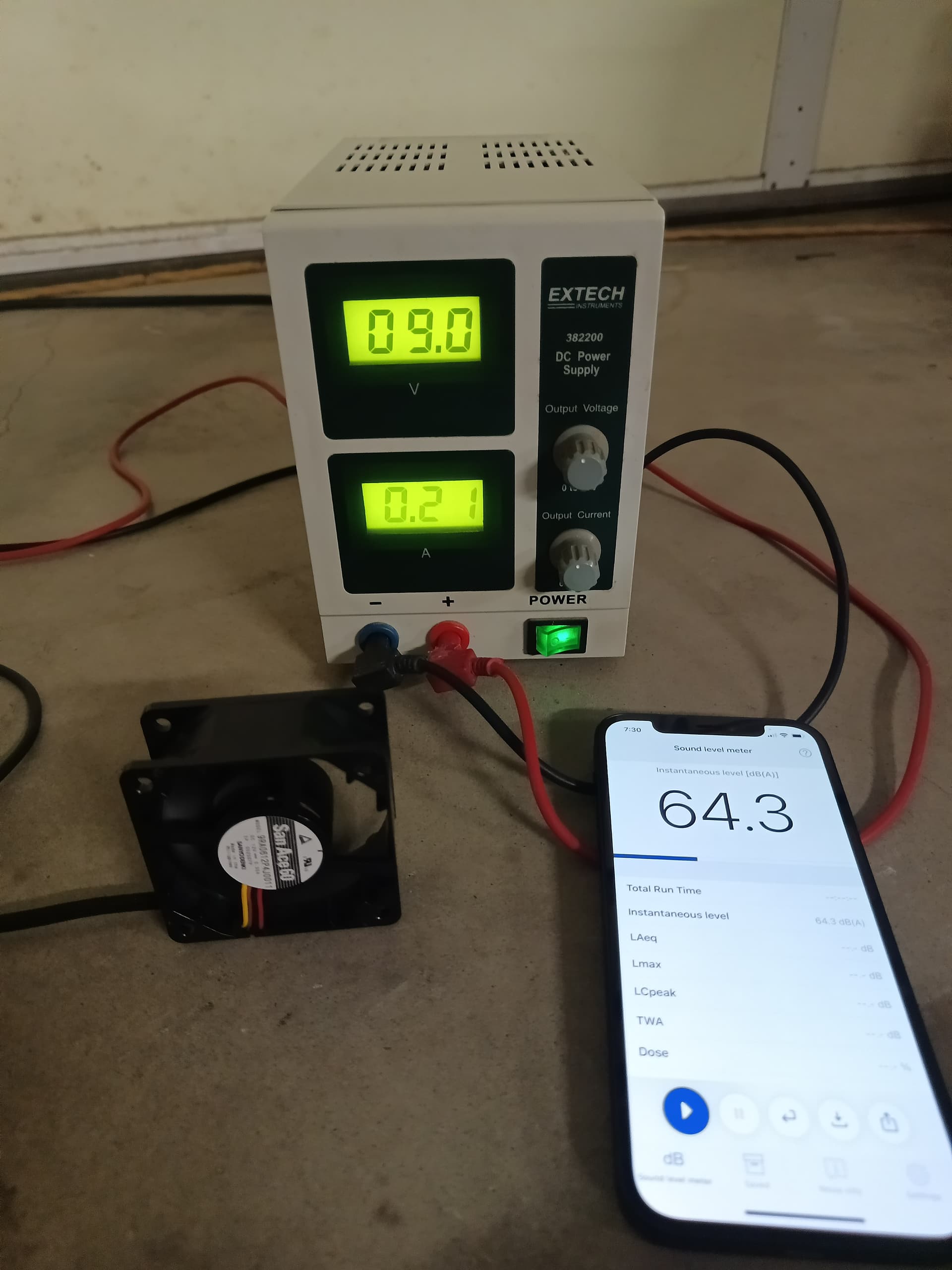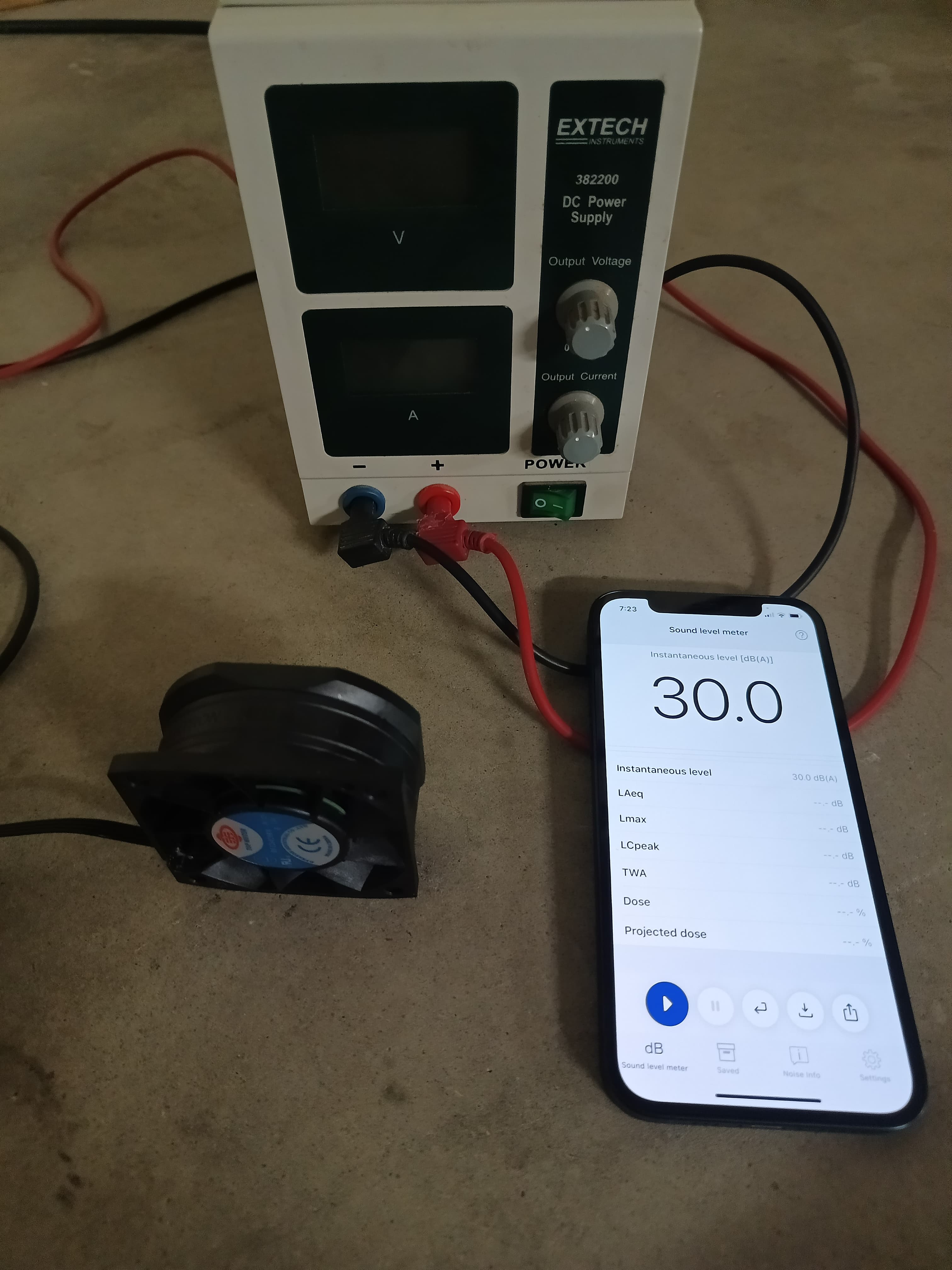 I don’t have a way to measure static pressure or flow, although my hand tells me that the 9RA might have a slight edge in flow volume, but I can measure the sound level and electrical load of the fans in the same position and orientation.