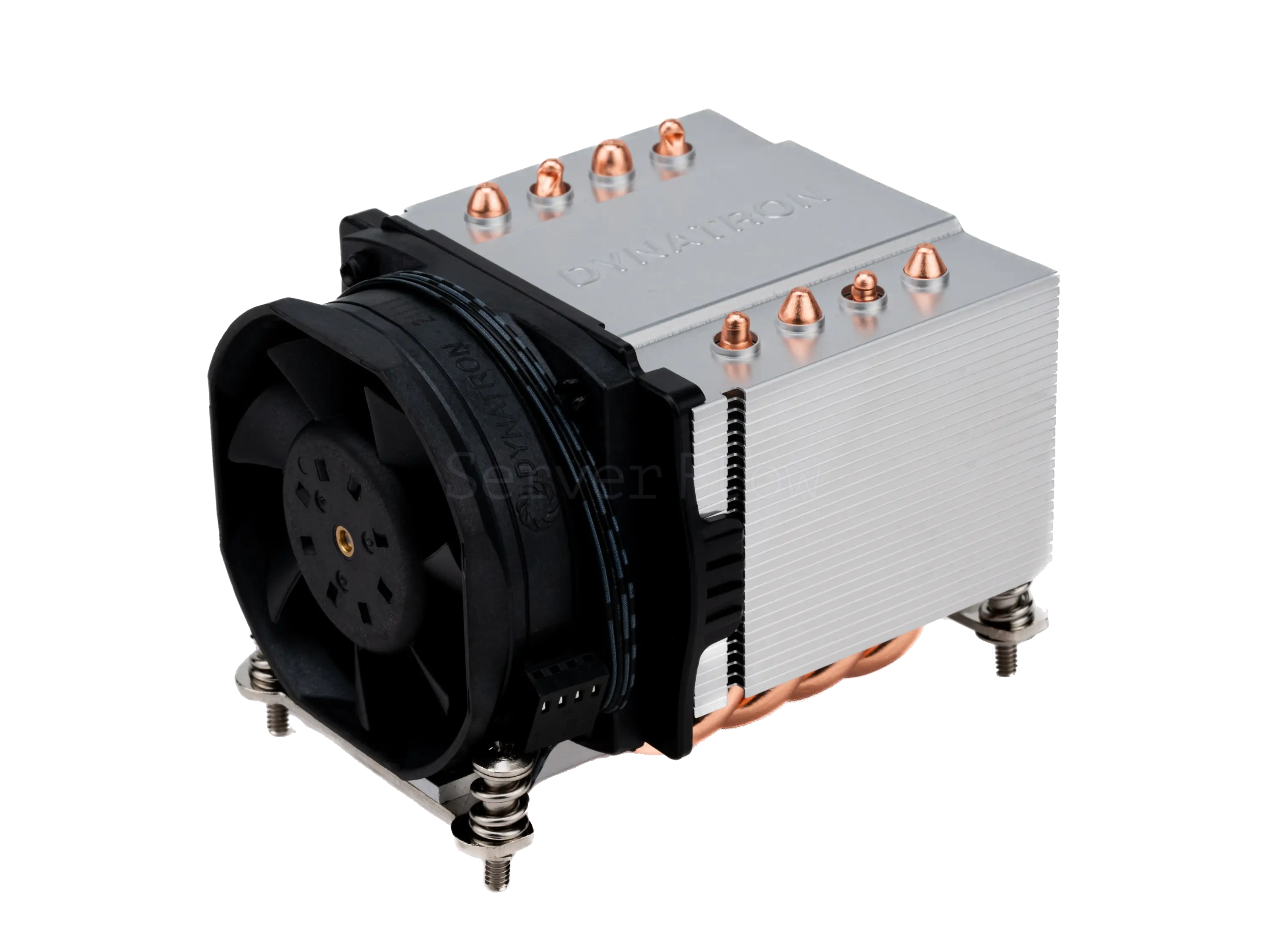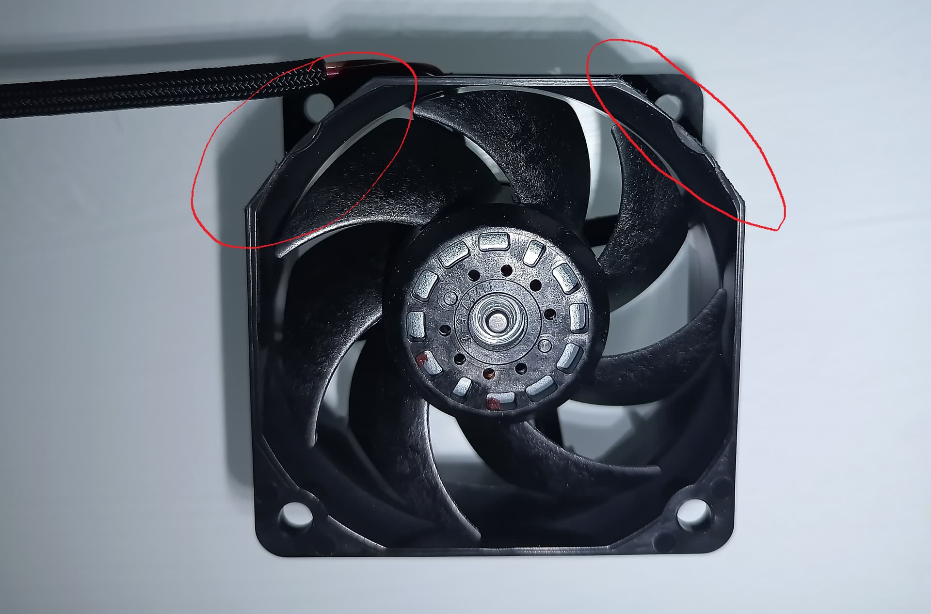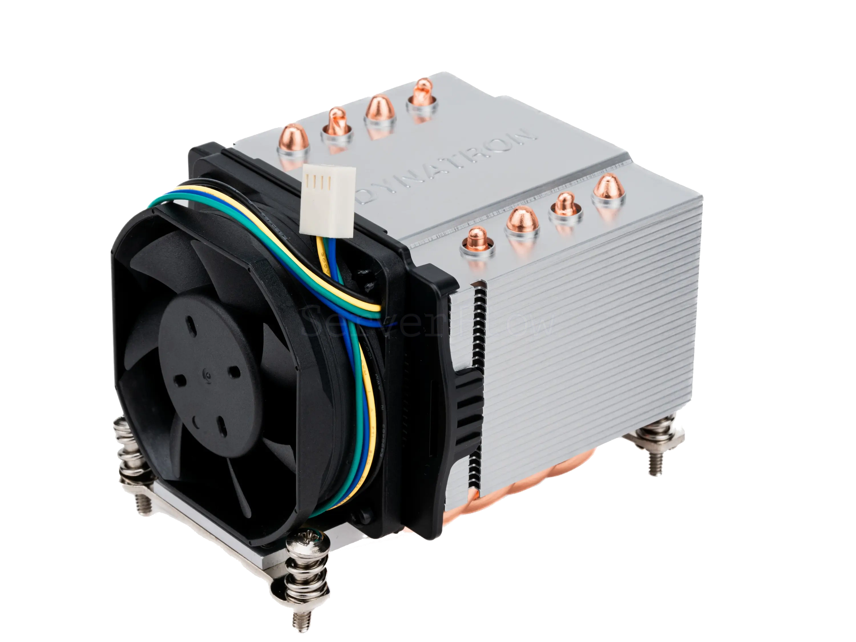 The issue that arises with fan replacement is that the Dynatron fan is constructed with an extra thick, non-standard mounting flange that causes a normal 60mm fan to incorrectly mount to the heatsink: