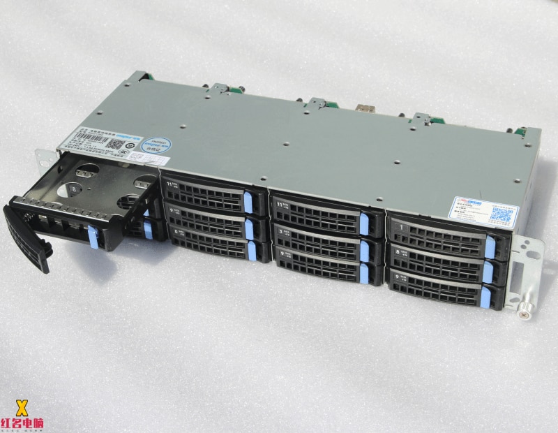So I run my home network and server our of a network rack in the top of my office closet. This has depth constraints and basically anything that has drive storage is too deep. This led me to speak with a manufacture in Taiwan about purchasing the front half of one of these servers, just bays and backplane. You can see where the front and rear of the case is riveted together. I thought about using a decommissioned server and cutting the front end off but they all seem to use propitary connectors and these backplanes use SATA power.