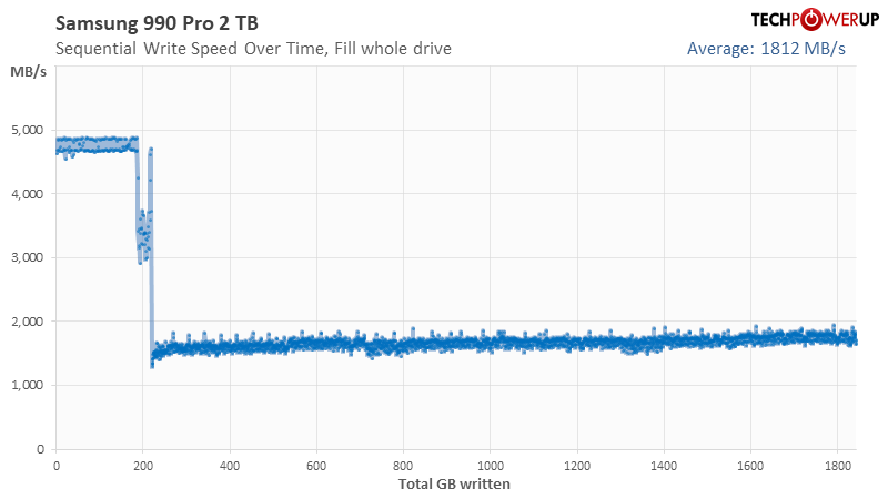 That seems awfully slow, techpowerup has the “raw” TLC write speed for the drive at ~750MB/s.