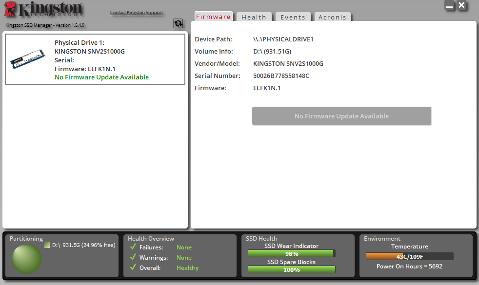 There’s 232GB of free space on the drive, I’d hope that can’t impact it too much. I’d like to RMA, but luckily this drive doesn’t need to be very fast, just receives scheduled images of the primary drive. I know one thing though, I won’t cheap out again! Thanks very much for your help