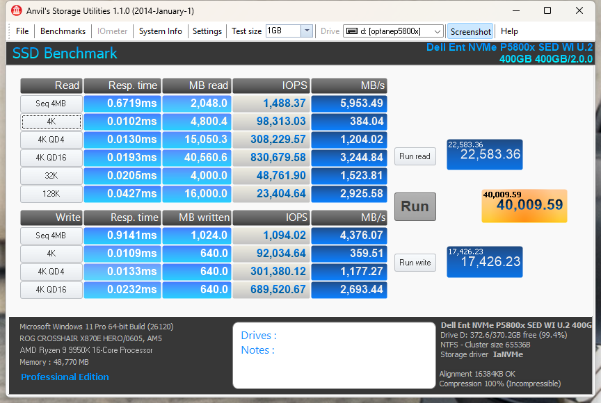 I am running a only 400gb p5800x and got this on my boot drive W11 (latest), albeit AMD 9950x proc x870e hero mobo running on nvme > u2 cable: