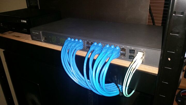 Hey everyone. I recently reconfigured my home network and replaced some cat6 cables with optical fiber cables. I thought I’d share my current configuration here just in case anyone is interested. The original plan was to replace a couple of 30m cables linking two switches with fiber just for something to do and because fiber is pretty cool, but I ended up getting rid of two other cables by using VLANs and reconfiguring the switches a little.