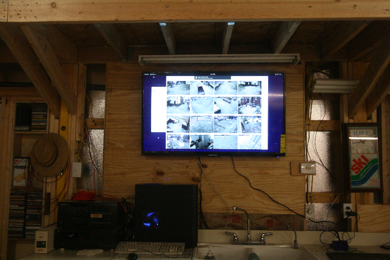 The Barn houses a Netgear 24 port POE switch that handles power and data transfer for cameras in our CCTV system and network/internet access. (yeah, next on my list is to make a permanent place for the switch and do cable management before closing up the wall)