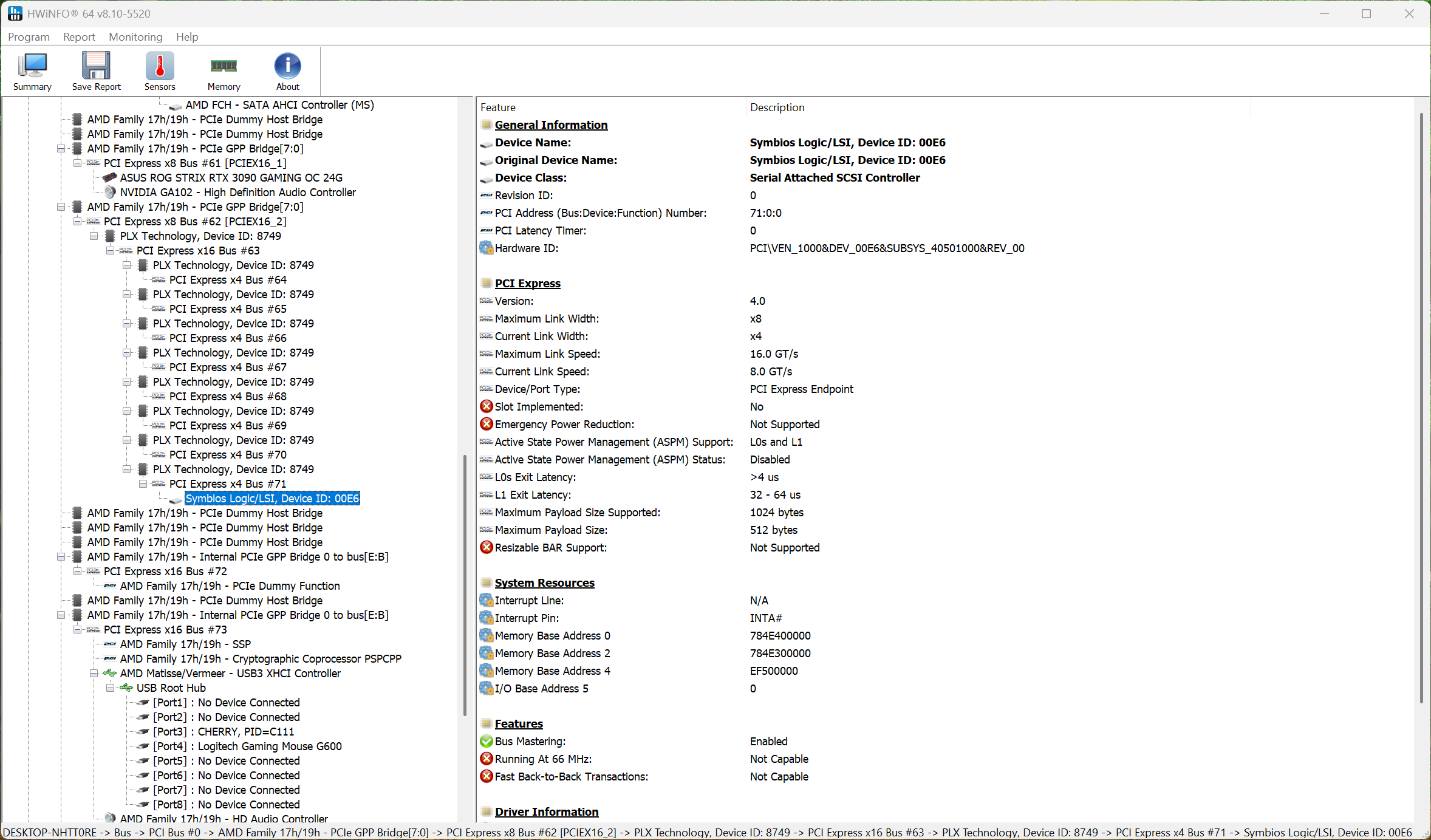 I’ll attach the output of lspci -vv for the port in question once I can add attachments to my posts.