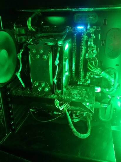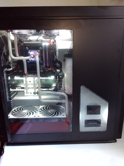 Hello All here in my last build.... not done yet still making the cables. Alway use Corsaire till I gave this Phanteks case a try.... Its well built with endless ways to build in it and it's very mod friendly seeing how a lot of the case is put together with screws.... Case: Phanteks Enthoo Primo Mother Board: Asus Hero VII CPU: 4790K @ 4.4 GHZ Memory: 32G Corsiar Dominator 2200 Vidio: 2 Asus GTX780 with EK FC waterblocks Storage: 2 Samsung SSD 250Gm 500G Cooling: CPU EK Evo waterblock, 2 Radiators 360 @ 40mm thick 280 @ 60mm thick. Primochill fittings and tubing. EK 270 rez and D5 pump. Both rads are in puch pull with corsair fans. PSU: Corsair 1200