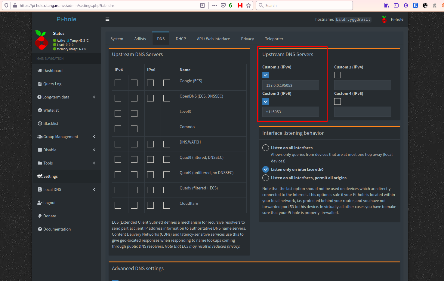 Make sure those IPs are set as the DNS for the pihole to get some initial filtering going.