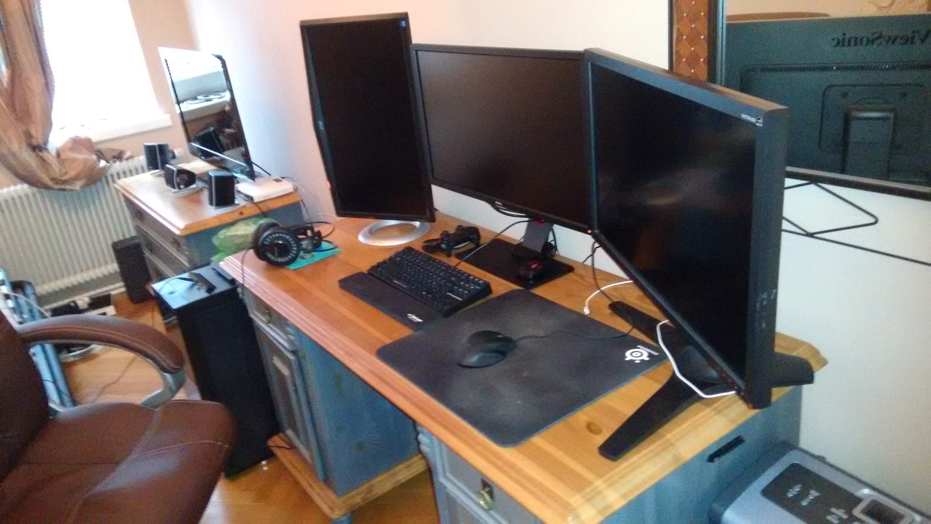 I've posted here several times before IIRC, but I recently, finally, added a third monitor, so I think another photo to show my updated workstation is appropriate lol