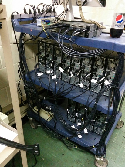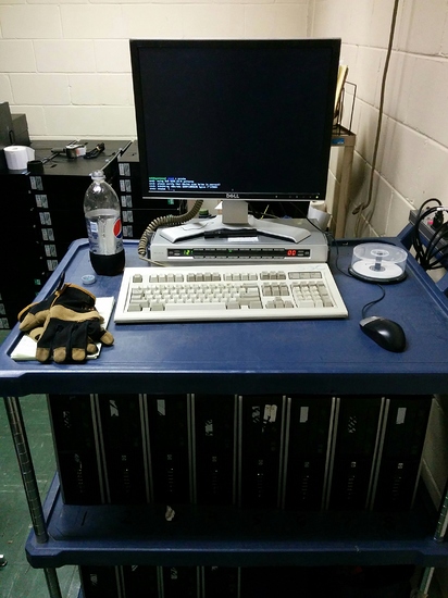 No clusters at work (yet, I may get bored one day) just a bunch of HP's running through a KVM for diagnostic purposes.