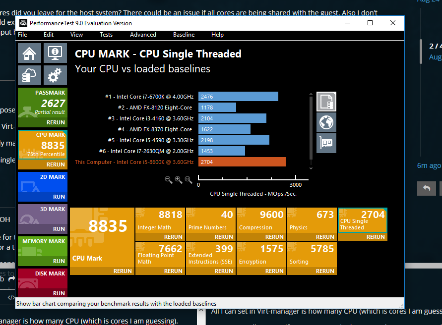 Tried multiple CPU set-ups manually, but I cannot seem to break through the 8800 CPU MARK when benchmarking in the VM, which is very low for my 8600K.