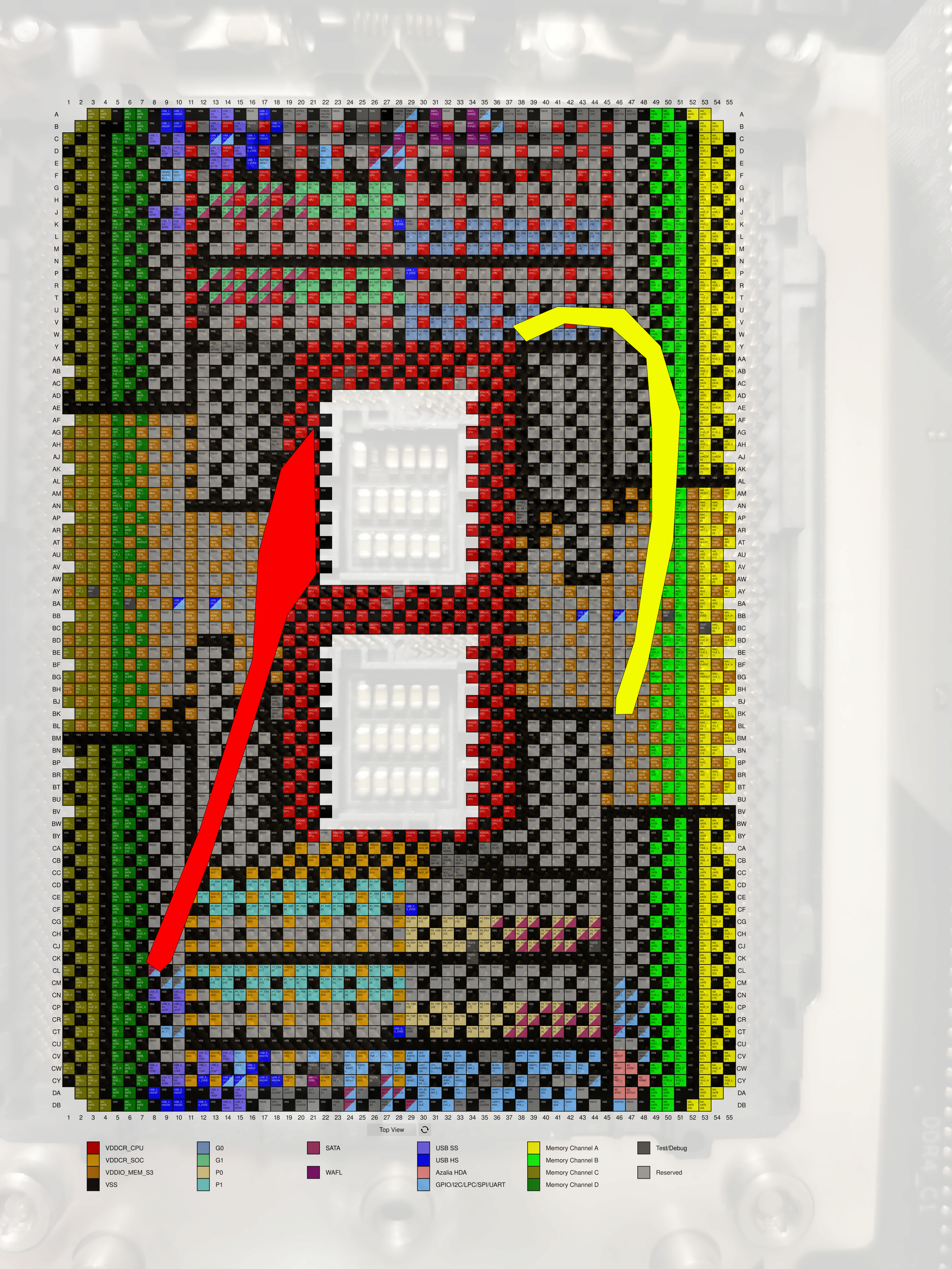 This is great. i was looking for a map and found a list of pin assignments for this socket, but it is hard to visualize as there are many many pins. A large number are as you say unused, ground or mem pins. I will do a mem test. The machine has been running weeks now. I will be away for a while as it’s holidays, but will report back.