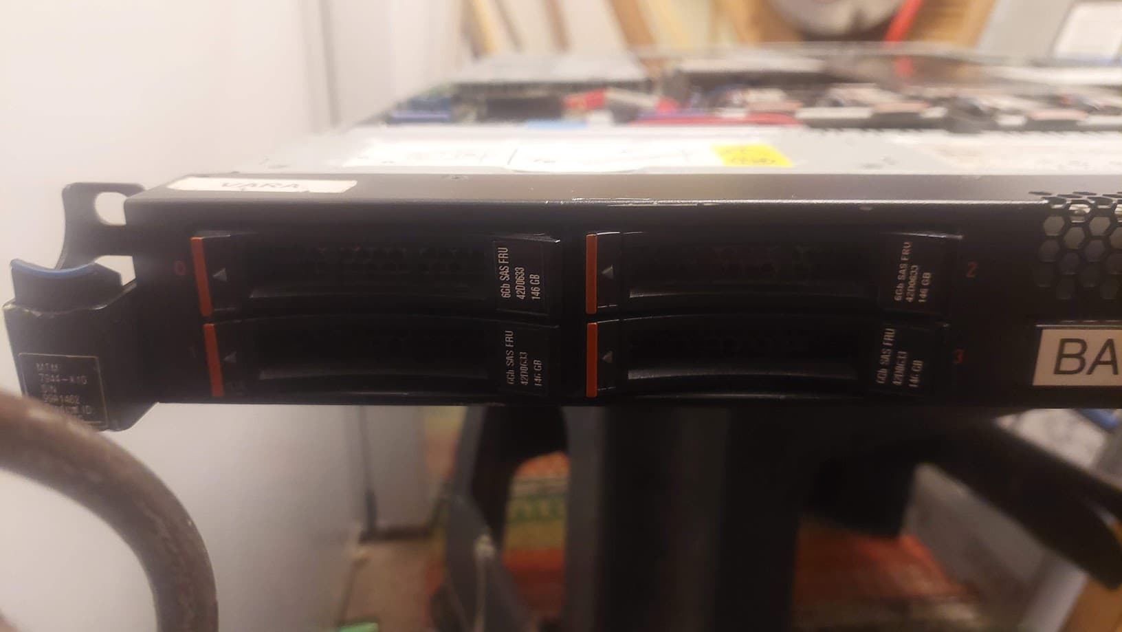 Direct-attach drive controller: IBM ServeRAID M1015 I think, just a rebranded LSI chipset that I don’t remember on top of my head. It is driving 2x 146GB 10K SAS-drives as JBOD’s and 2x1.0TB WD SATA drives as JBOD