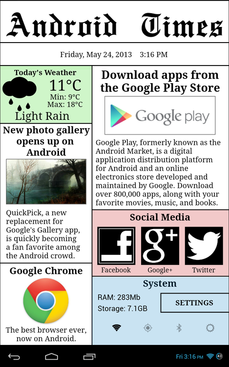 Android Times (Nexus 7) NOTE: I'm currently updating this theme to make it easier for people to recreate it and adding 2 more "pages".