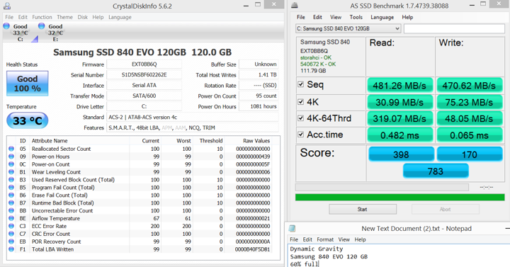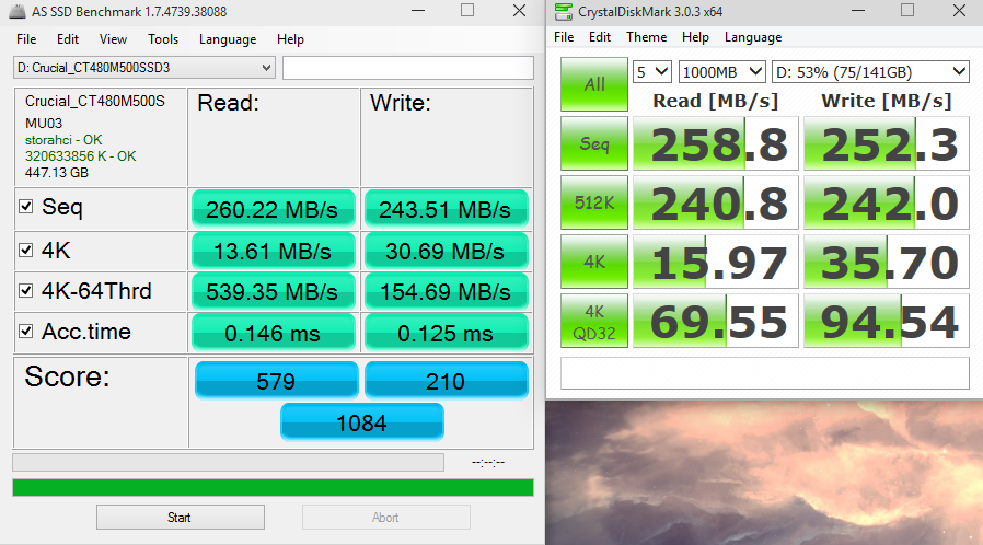 As previously stated in the top of the original post I made, 16GB L1 Read/Write Cache with DDR3 2133 MHz system RAM. PrimoCache is awesome, makes a single SSD act like a 10-drive RAID 0 SSD array on a RAID controller card.