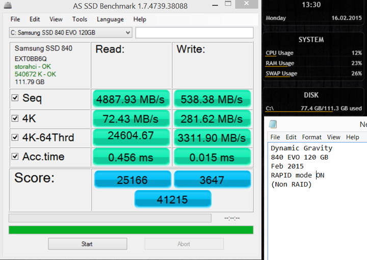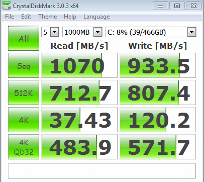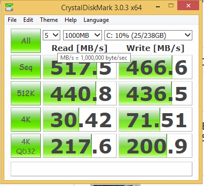 Heres what my score is with the same SSD with Samsung RAPID mode ON.