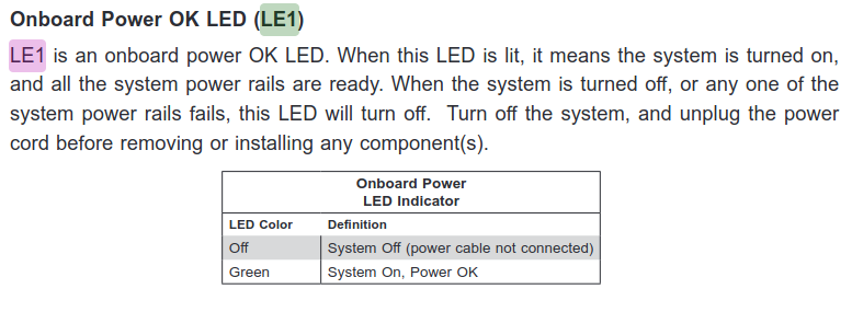 LE1 blinking and then stopping would mean that the board is at least receiving the standby power correctly and is able to verify the Bios and FW to be correct.