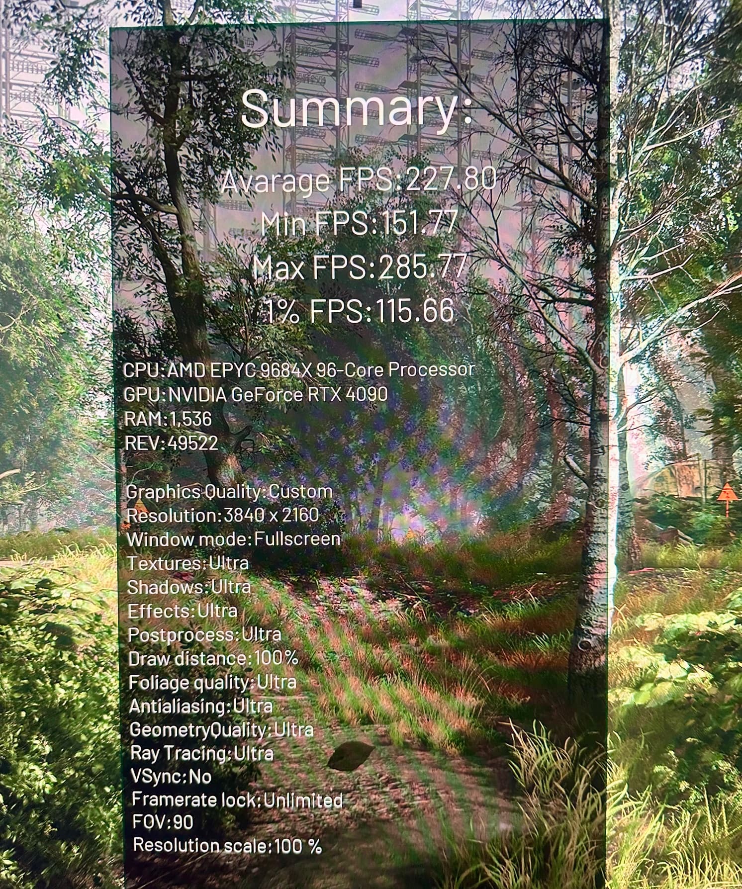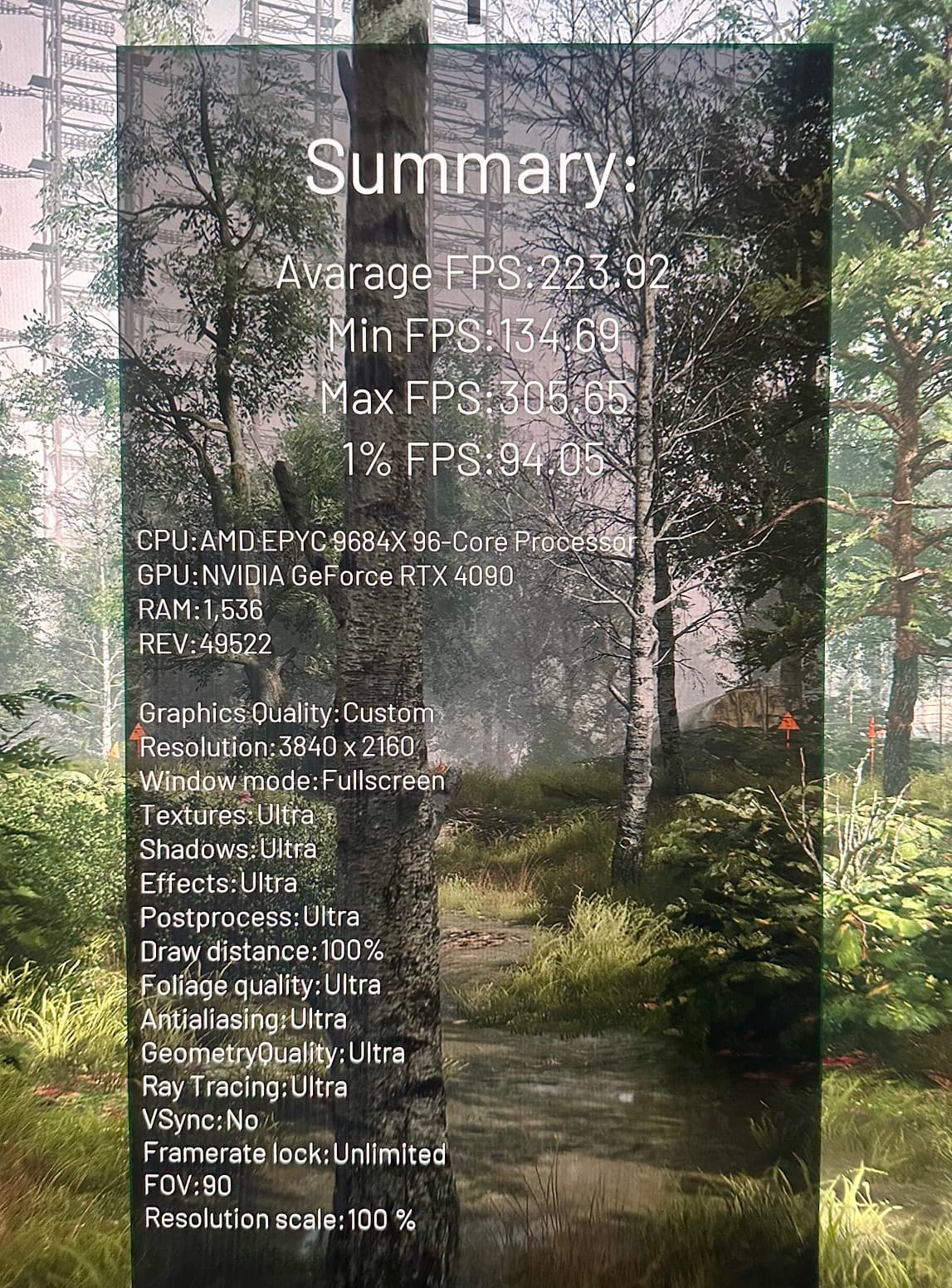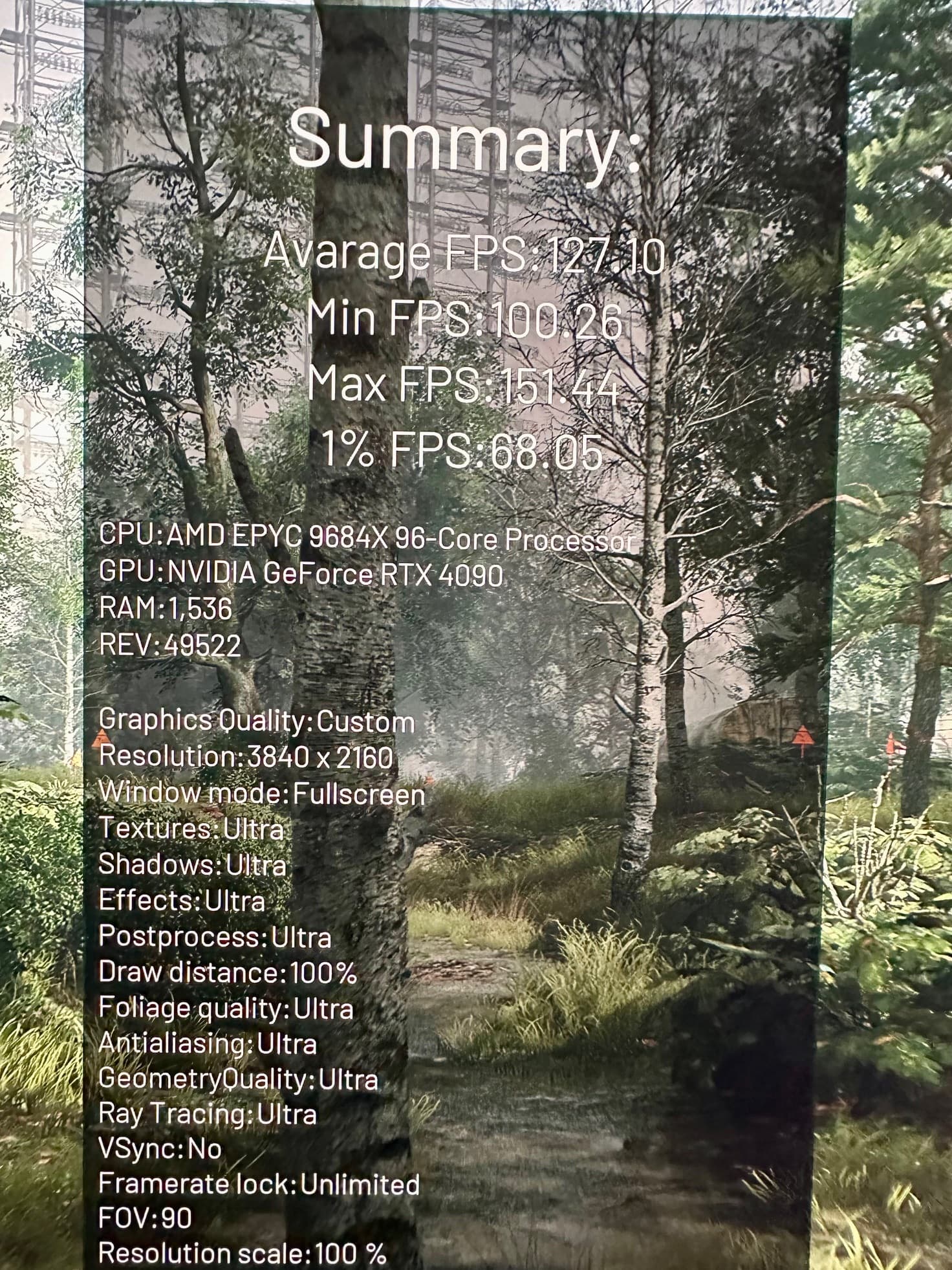 I will use Chernobylite a UE4 title as a representative as the benchmark summary screen actually lists the setting used in the benchmark (wish more titles did this)