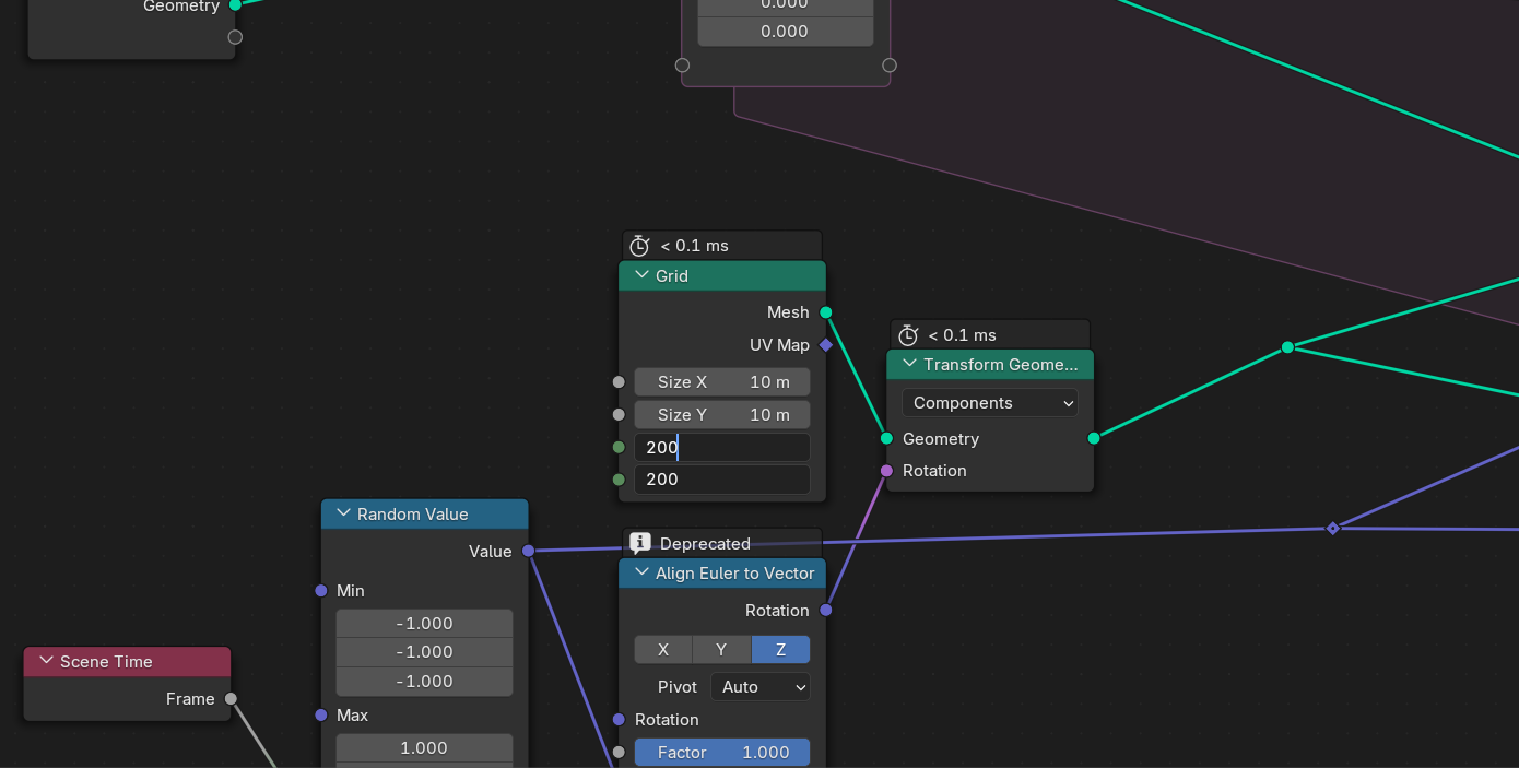 Threadripper will most likely have this curve much lower, but just for science, you can simply crank up subdivision in the Grid node for 2 to 200. Let’s see how Threadripper reacts.