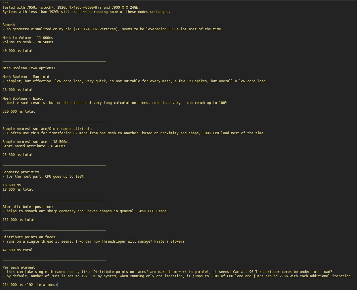 “Distribute points on faces” seems to be running only on a single thread. I wonder how Threadripper will manage? Faster? Slower?