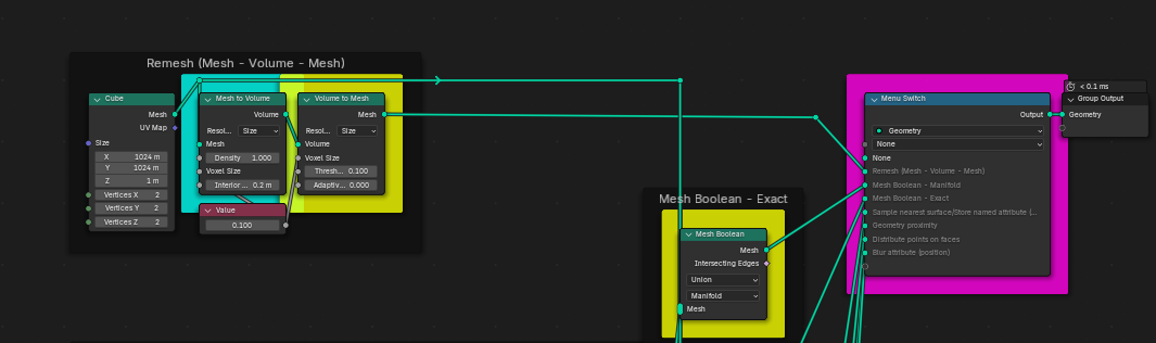 For example, first “Remesh” calculation generates excessively large amount of geometry, specifically 210 124 802 vertices and my system is unable (or gives up) to render it. I wonder, if your system will be able to or if this is Blender’s own limitation. Please, let me know, if it renders all that geometry for you or not. And computational time, of course.