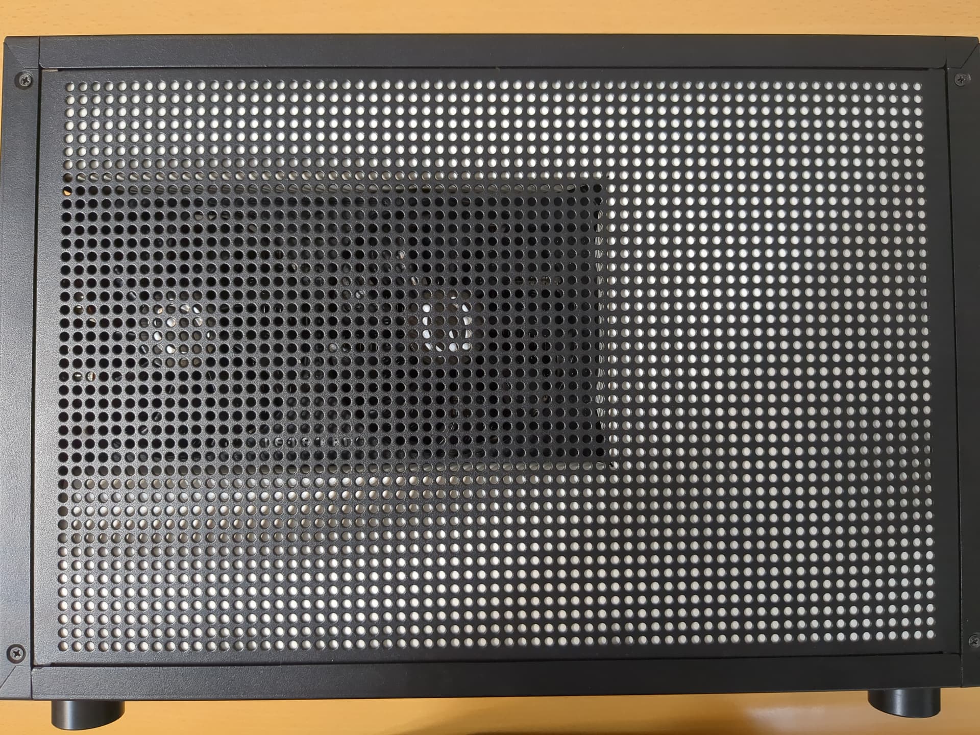 Although 905p is a 2.5" drive, it’s 15 mm thick, and doesn’t fit in M5 by default, we have to improvise. We can mount 905p at the top or bottom panel. The pitch of venting holes is not design for mounting 2.5" drive, but fortunately, it’s still lined up with all four holes.