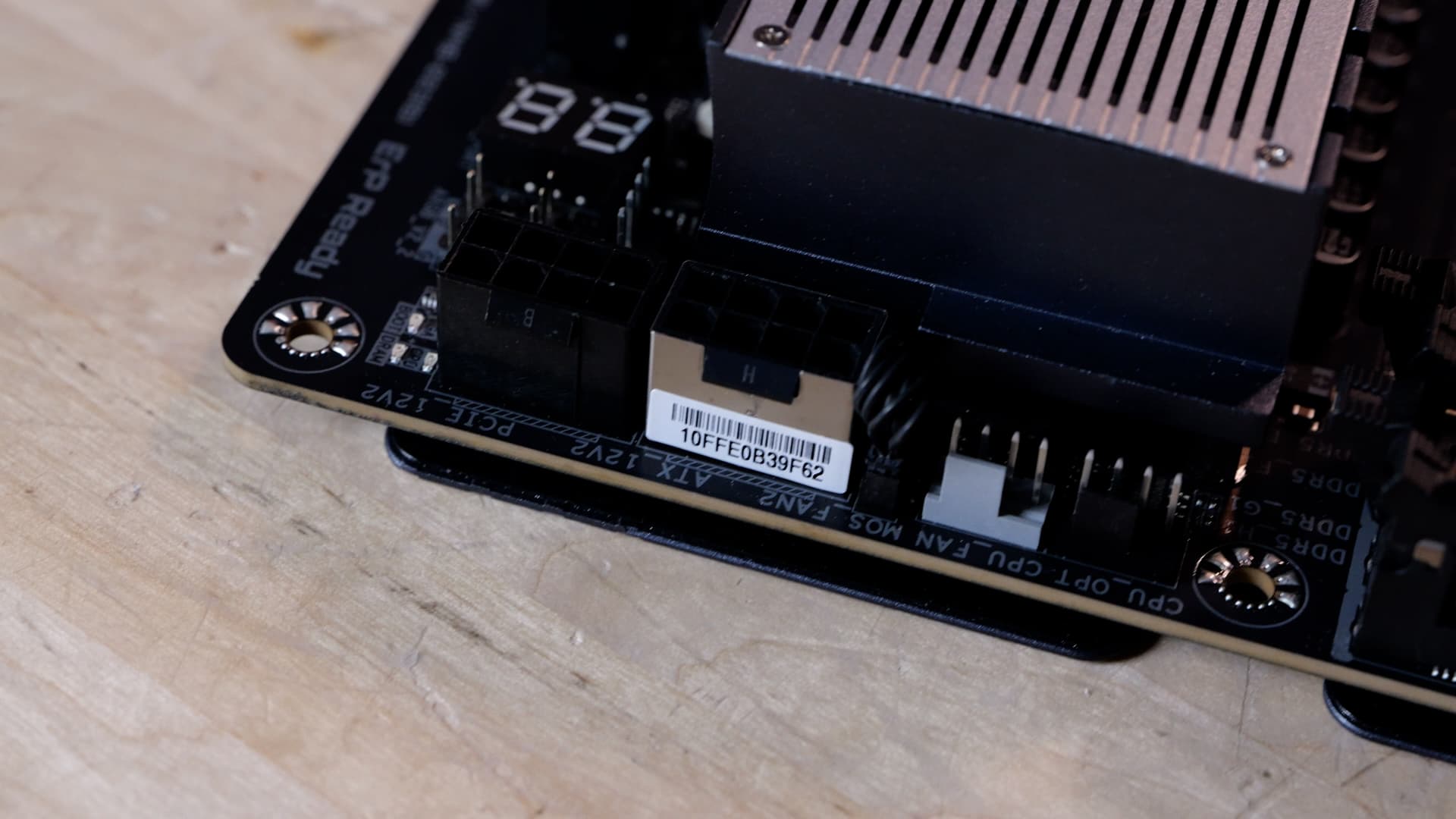 The PCIe layout also is worth considering; there are four x16 slots, but the bottom is only PCIe Gen 5 on Pro CPUs or 9000 series non-Pro CPUs, meaning those of you with 7000 series non-Pro CPUs won’t get Gen 5 speeds. This board seems built to support multiple GPUs, and has two extra GPU style power inputs to help support that. The x16 slots are also fastened to the backplane and reinforced.