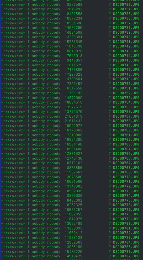 So, those were pictures from my phone, as I’m sure you ascertained. However, the same occurs when I repeat the ls on a dir of files downloaded from the internet to the NAS through this CachyOS install. (no screenshot of the nature documentaries here