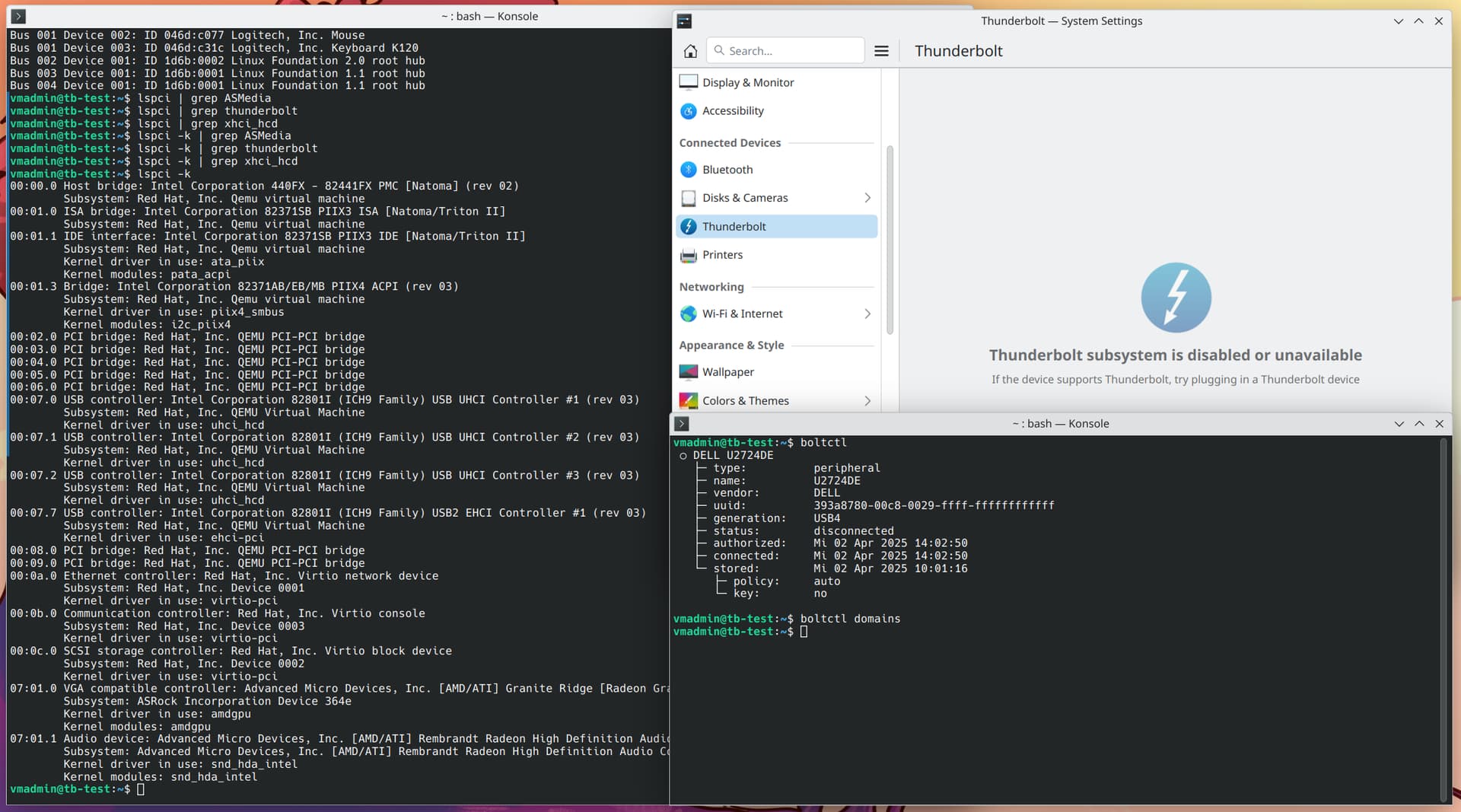 In the VM I used boltctl in order to authorize Thunderbolt devices. Unfortunately neither boltd nor boltctl or any other tool for thunderbolt exists in Unraid except the driver and I could not find any to install. All I found is a post in another forum where a guy was building the boltctl package for slackware but this I didn’t want to try, this is way over my head at this point.