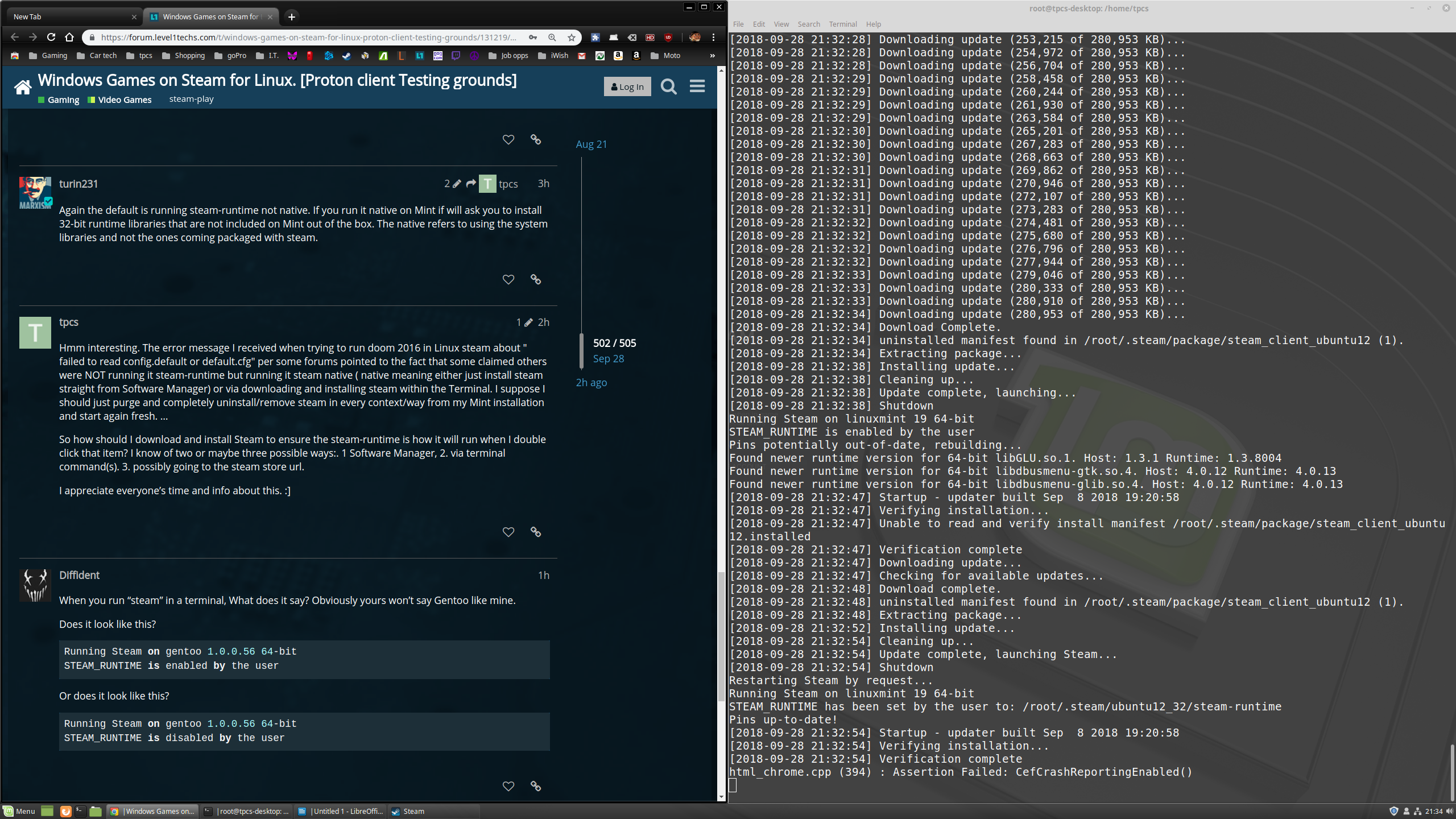 When you run “steam” in a terminal, What does it say? Obviously yours won’t say Gentoo like mine.