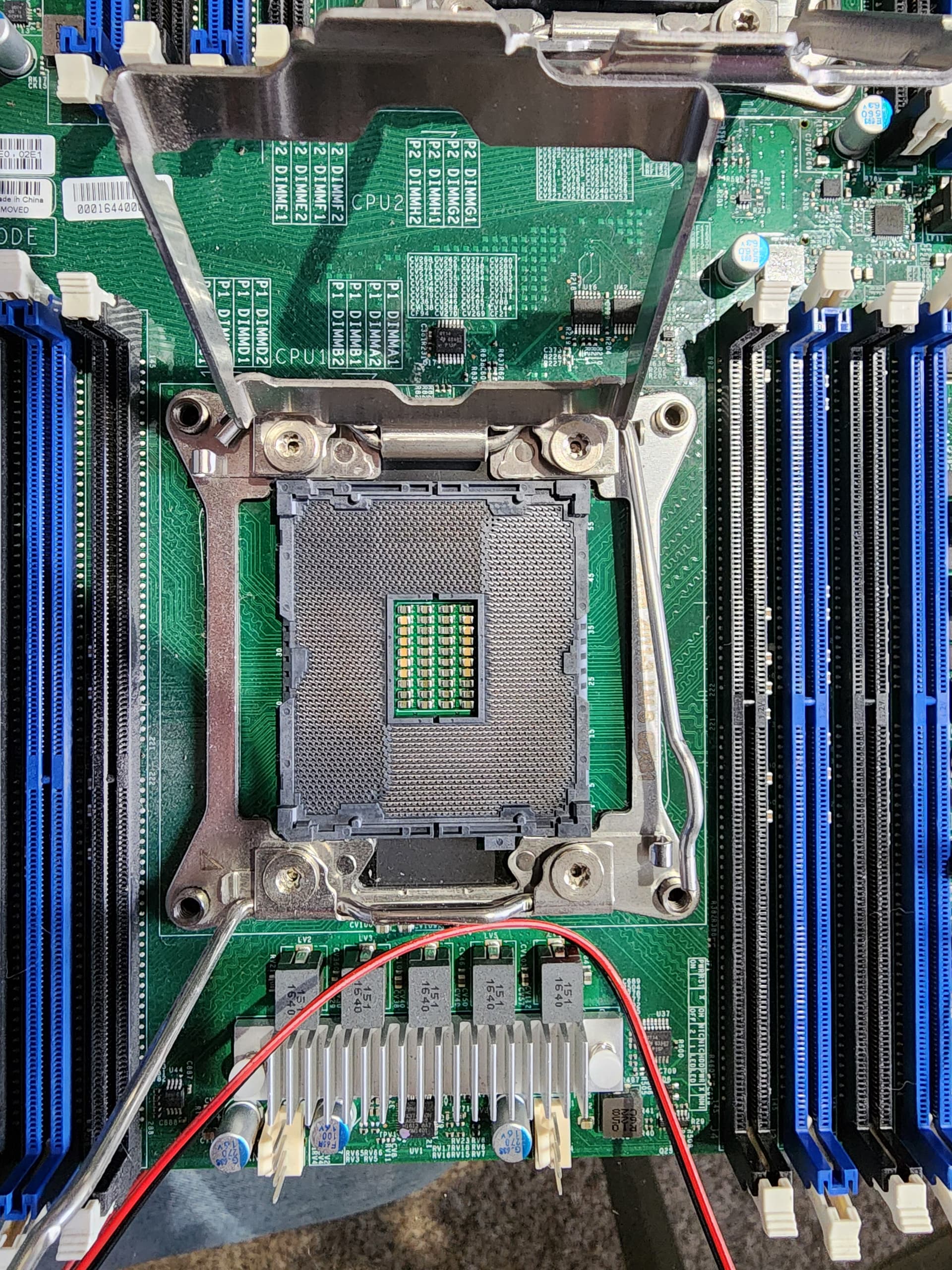 I also decided to double check the Xeons and repaste them… See pictures. All looked good. While going through this I tried to boot it with just one CPU and it ‘latched’ and finally booted on the second power cycle with one CPU and its associated RAM installed.