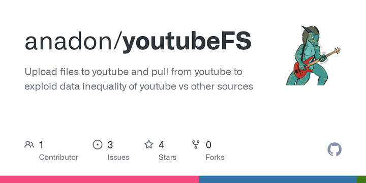 Status right now is it can encode and upload (given secrets.json) files encoded as YouTube videos. Data density hasn’t yet been optimized, but more importantly I can’t seem to get frame decoding working. Unfortunately, #ffmpeg has no interest in code problems right now.