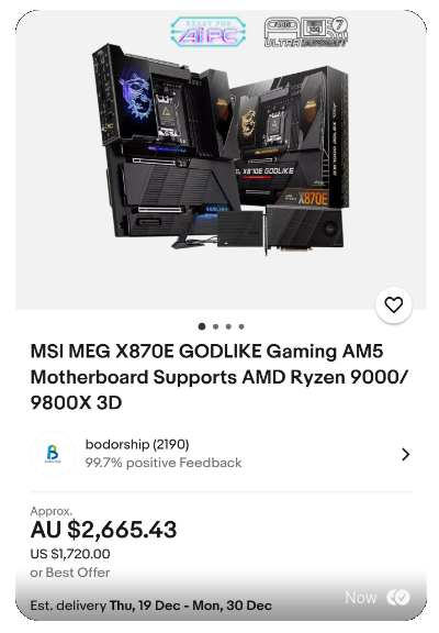 EU and US are kinda lucky, they have a short window, okay maybe super short before things get bought up by scalpers… am thinking 2-3 months after release for the 9950X3D to make it here in very very low stock numbers, and a lot of other things like the seasonic - noctua PSU collab as well as the Godlike mobo, they won’t be here until february earliest and once they’re out of stock, that’s pretty much it…
